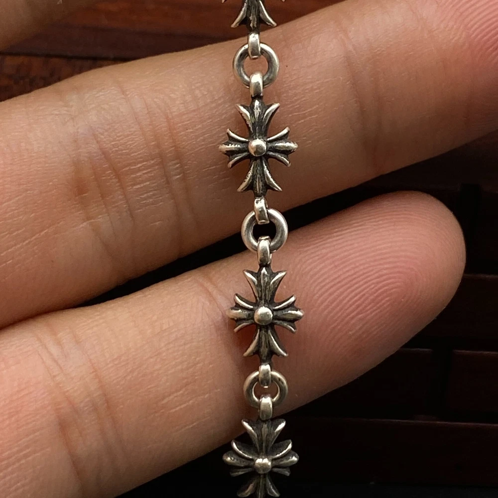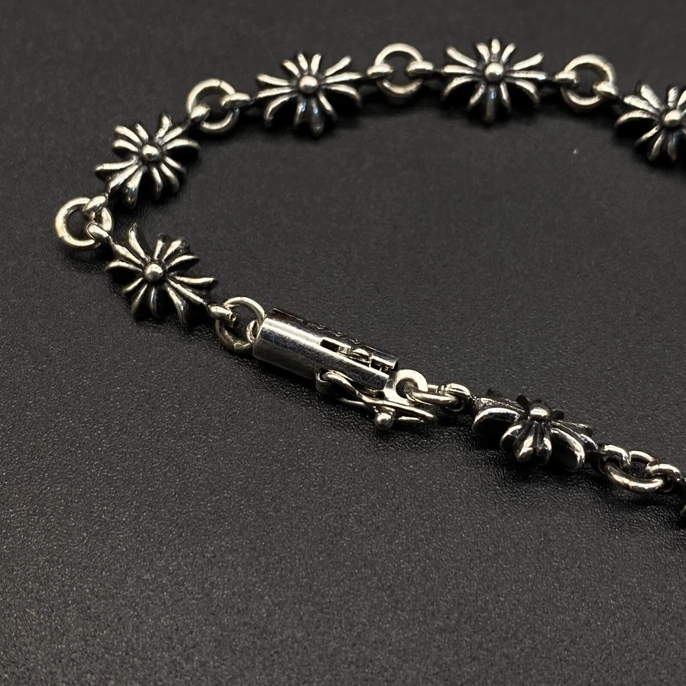 Chrome Hearts 925 Silver Cross Flower bracelet 14K gold Length 21cm No boxes or dust bags