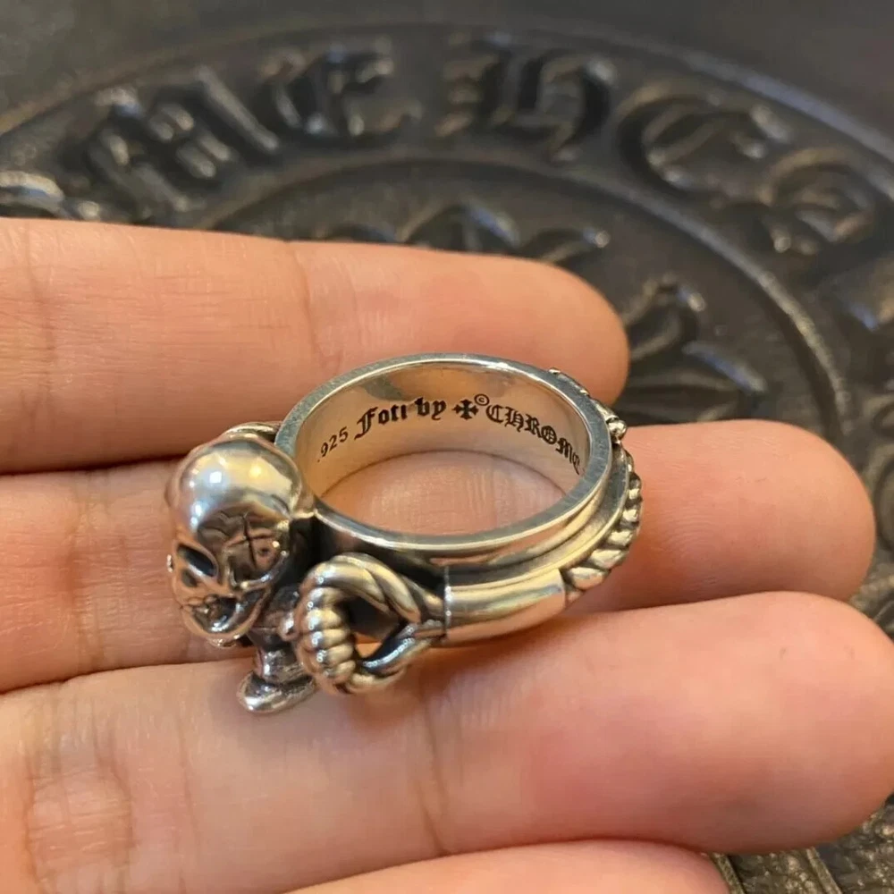 Chrome hearts sterling silver skull ring Size 6.5