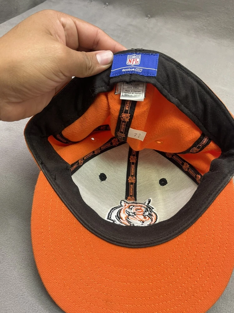 Sport:Football-NFLOfficially Licensed:YesColor:OrangeGender:MenBrand:ReebokSize:7 3/4League:National Football League (NFL)Team:Cincinnati BengalsProduct:Cap, HatPre & Post Season:Regular Season
