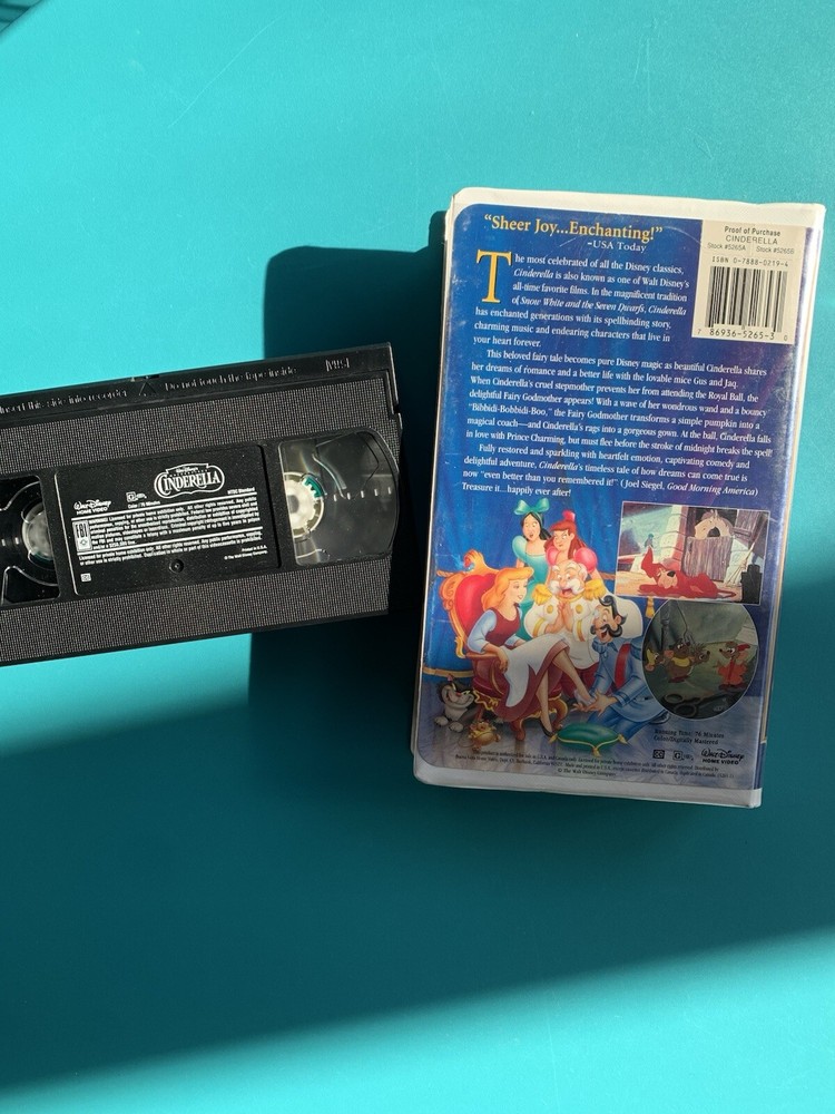 Experience the classic magic of Disney's Cinderella with this VHS Masterpiece Edition. The clamshell case #5265 features the beloved animated character in stunning color and brings the timeless story to life. This VHS tape is compatible with NTSC signal standard and has a G rating. It is perfect for fans of animation and anime, and is a must-have addition to any Disney collection. The movie/TV title is Cinderella (1950 film) and the studio is Disney. This item is categorized under Movies & TV and VHS tapes.