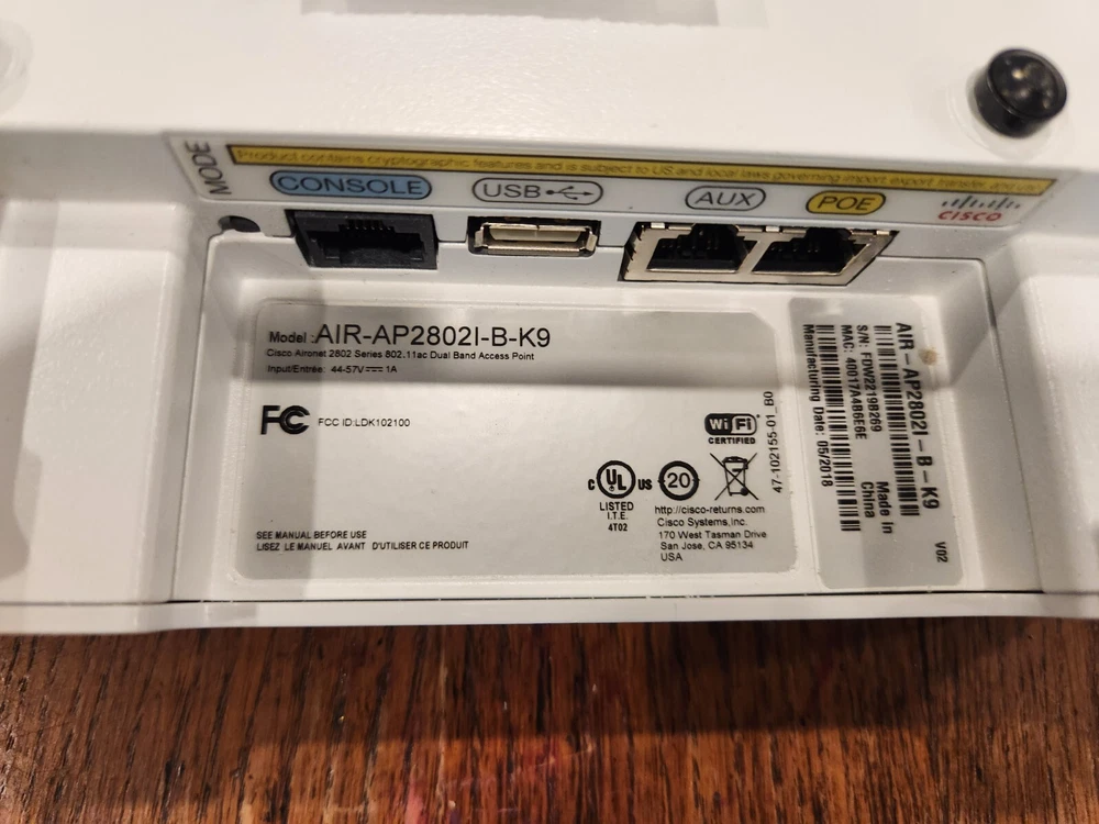 ITEM: Cisco AIR-AP2802I-B-K9 CONDITION: Tested, fully functional. INCLUDES: 1x AIR-AP2802I-B-K9 1x Mounting Bracket WARRANTY: 90 days