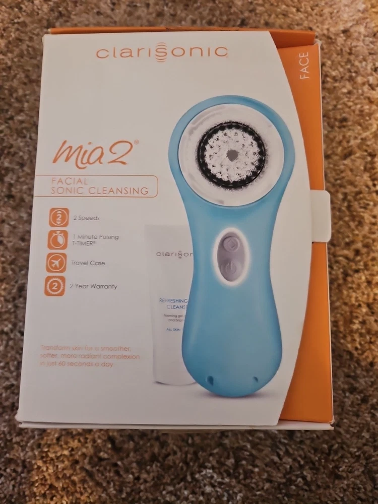 Clarisonic Mia2 Facial Sonic Cleansing Brush System Blue Case. Charger, original box, case and brush head cover included