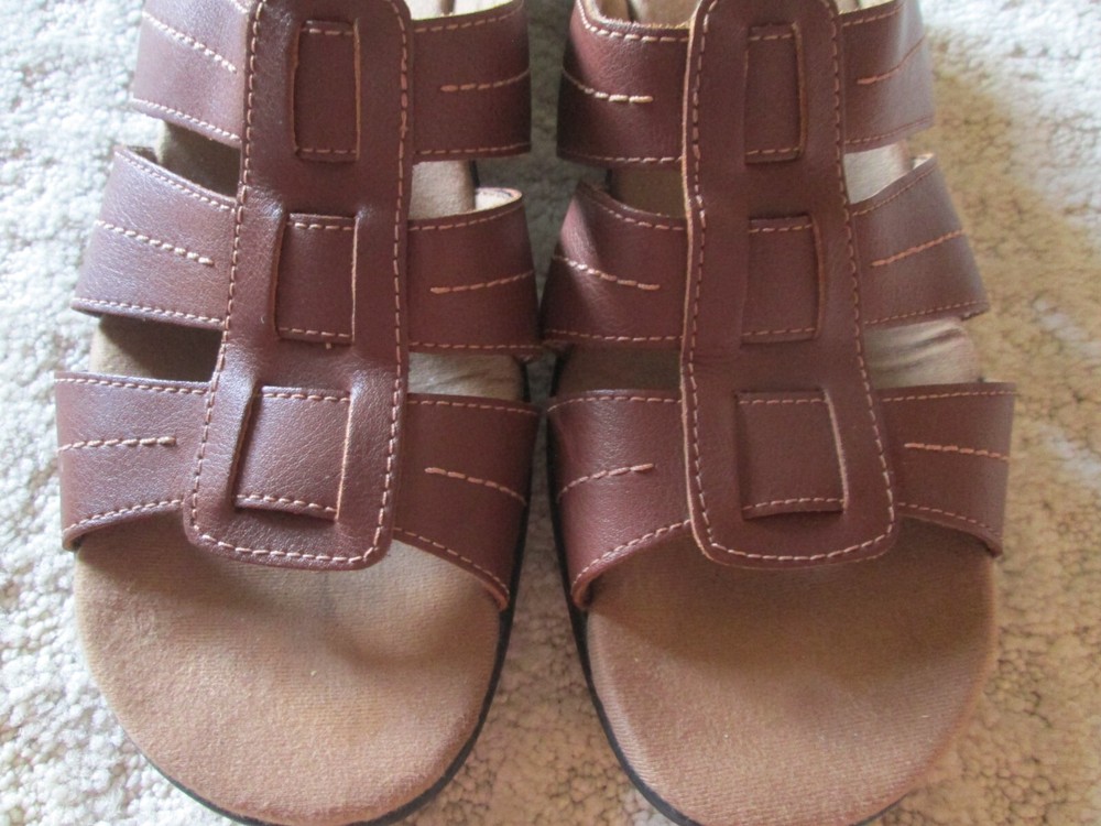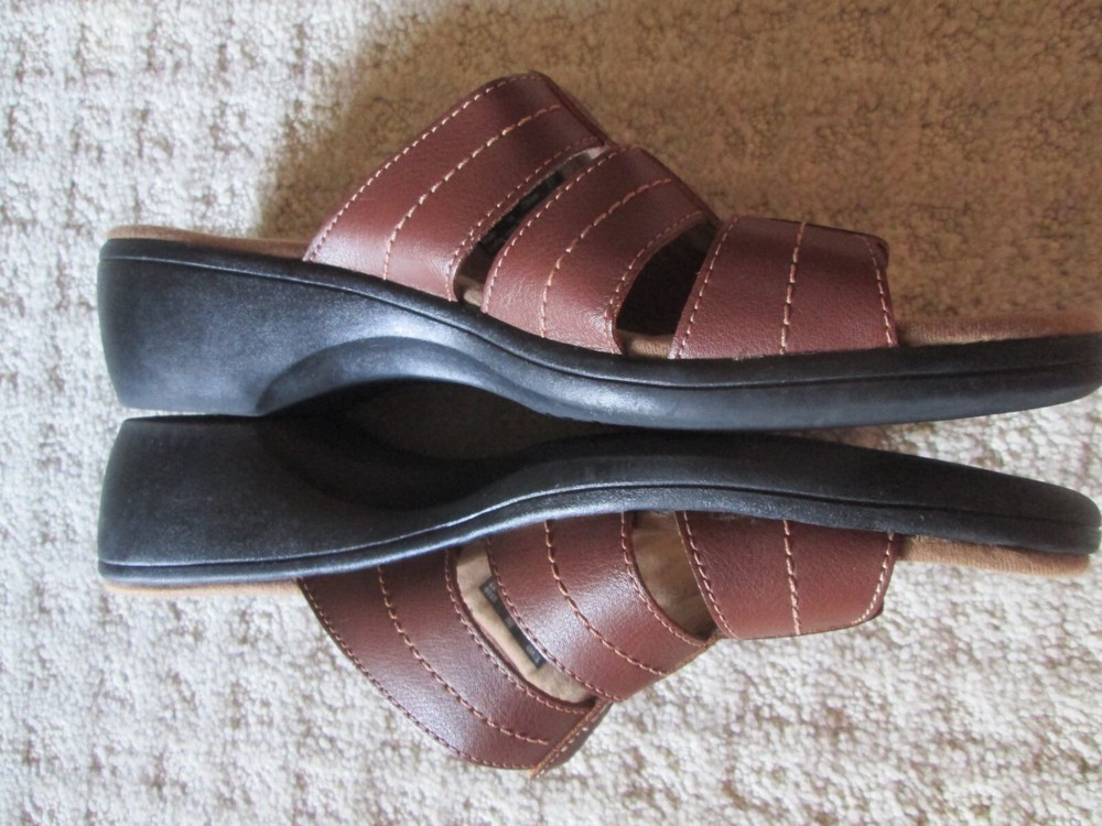 HomeClarks Sandals Women 8M Strappy Slide 81897 Brown Leather Open Toe Heels