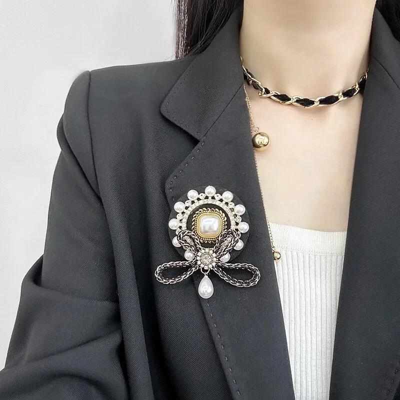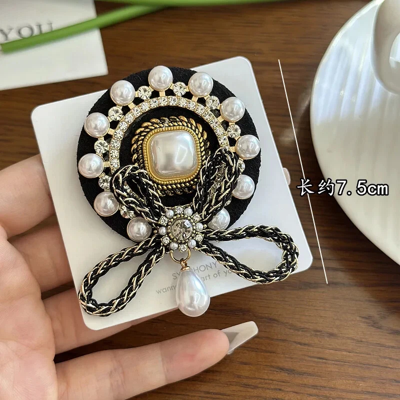Classic Baroque Brooch Vintage French Pearl Tassel Bow Temperament Accessories