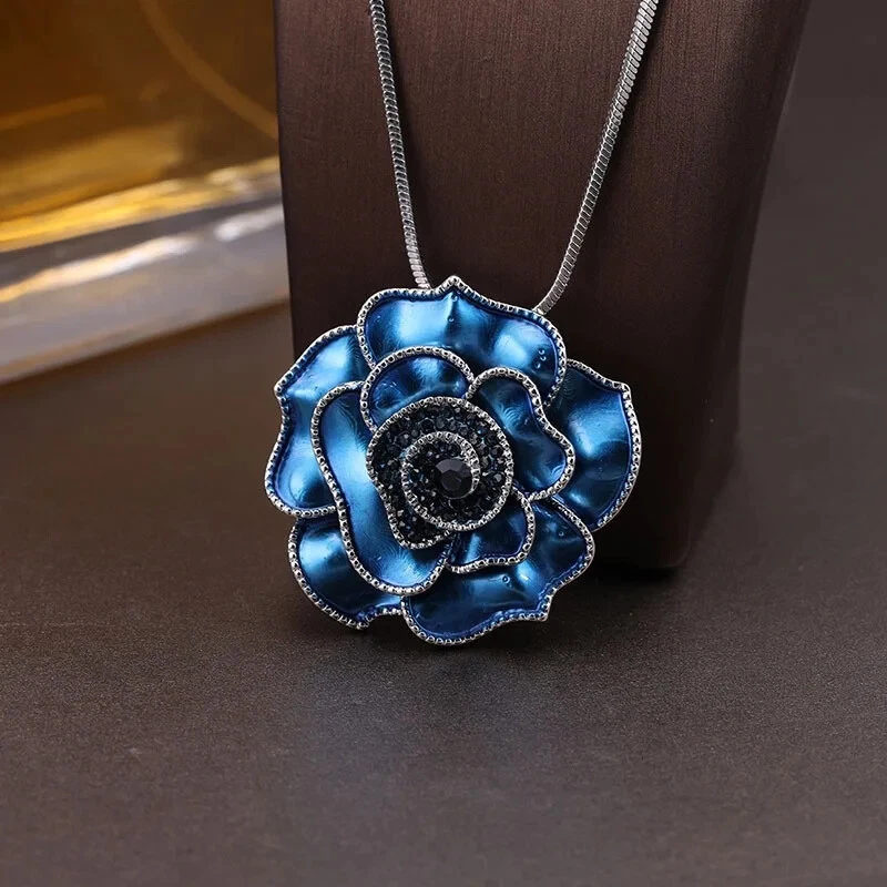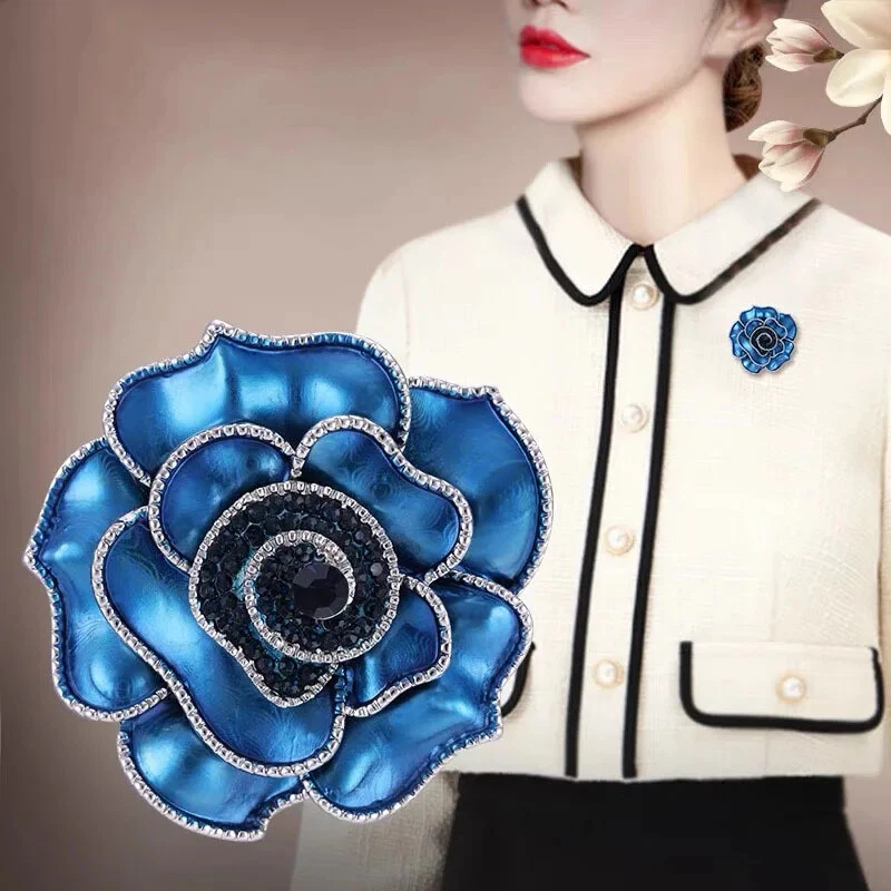 Classic Blue Camellia Brooch Ladies Luxury Series Jewelry Brooch Accessories
