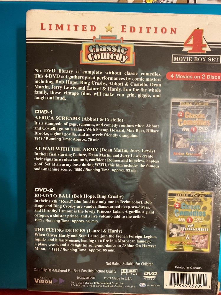 Classic Comedy 4 Movie Box Set (DVD 2-Discs) Abbott & Costello Bob Hope & More.