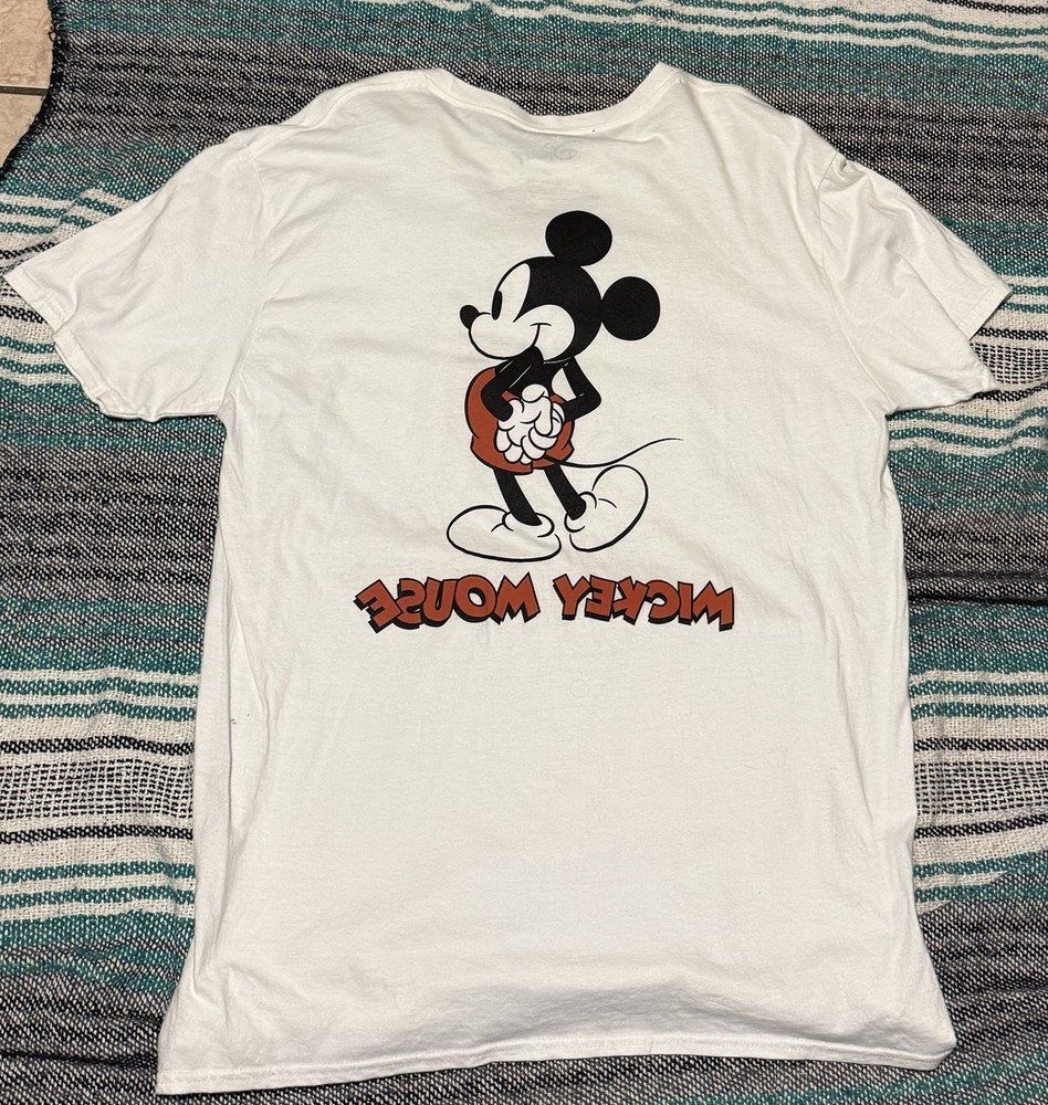 An essential Disney piece! Classic, large graphic of Mickey Mouse on the front, with a smaller graphic on the back (NOTE: The back text is mirrored/reversed, which is a key design detail on this specific shirt). Perfect for a fun, nostalgic, or street-style look. β‘οΈ Condition: Good pre-owned condition. The white cotton shows signs of light wear and wash, but no major stains or damage. Graphics are bright and intact. π Details & Fit: β’ Brand: Official Disney Merch (Tagged) β’ Tagged Size: XL / EG / TG (Extra Large) β’ Best Fits: True to size, providing a comfortable, slightly roomy fit. Excellent for an oversized tee dress look. β’ Material: 100% Cotton β¨ Style Notes: Iconic retro style. Great for a trip to the Disney Parks, or pairing with biker shorts, cargo pants, or underneath an open flannel shirt for a street/skater vibe.