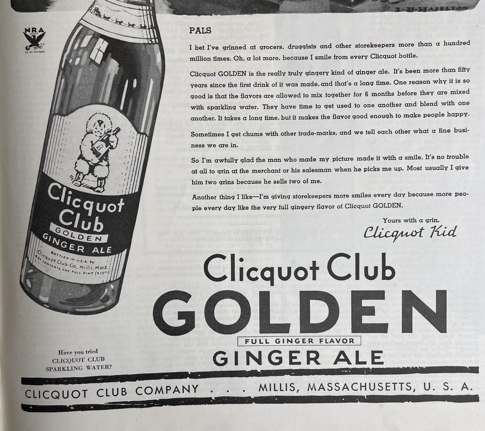 This 1934 vintage print ad for Clicquot Club Golden Ginger Ale highlights its smooth flavor, achieved through a six-month blending process. An iconic collectible from Millis, Massachusetts. • Features iconic Clicquot Kid design • Showcases full ginger flavor in GOLDEN formula • Published by The Saturday Evening Post • Promotes Clicquot Club Sparkling Water Features: • Includes - One Advertisement Removed From Magazine • Year - 1934 • Ad Size - Full Page Print • Notable - Will Ship Flat, No Folds • Pages Gently Removed From Magazine • Vintage Soda Ads, Vintage Advertisements, Soda Advertisement, Nostalgic Advertisement, Retro Decor • Made in United States • Original Magazine Print Ad • Due to the range of viewing device configurations, actual item colors might differ slightly from the photographs. • Location -Millis Massachusetts Approximate Measurements Length 13.5 in / 34 cm Width 10.5 in / 27 cm Condition: Pre-Owned Good Normal wear associated with an old magazine, newspaper etc. It may have foxing, fading, discoloration, creases, a corner bump, ink on the front, tiny tear, glue/tape marks on the back etc. Please use the zoom feature and view all the photos for condition. Stored in Pet/Smoke-Free Environment SHIPS SAME DAY/NEXT DAY 20251112
