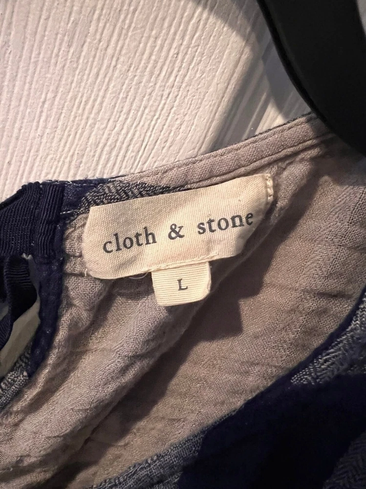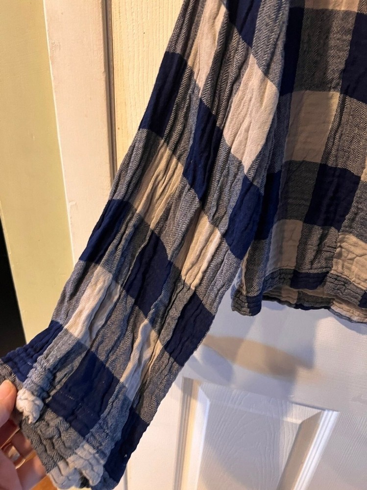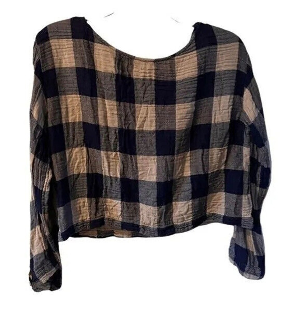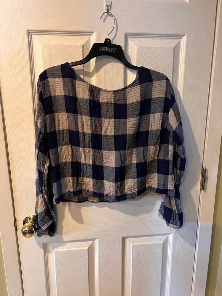 CLOTH & STONE Blue Plaid Crop Long Sleeve Sz Large. Ties at the back of the neck. Pit to pit measures approx 21 Shoulder to hem measures approx 18 44% rayon 56% cotton