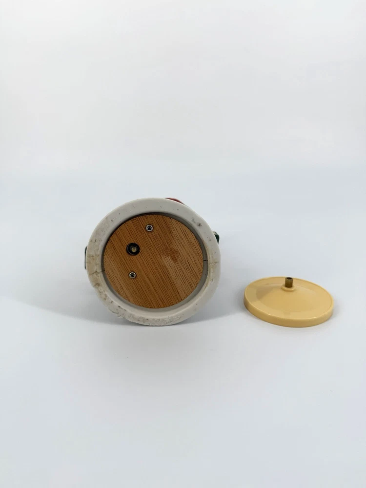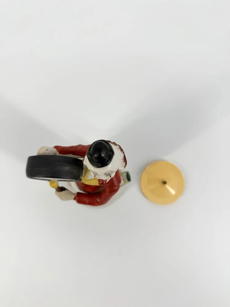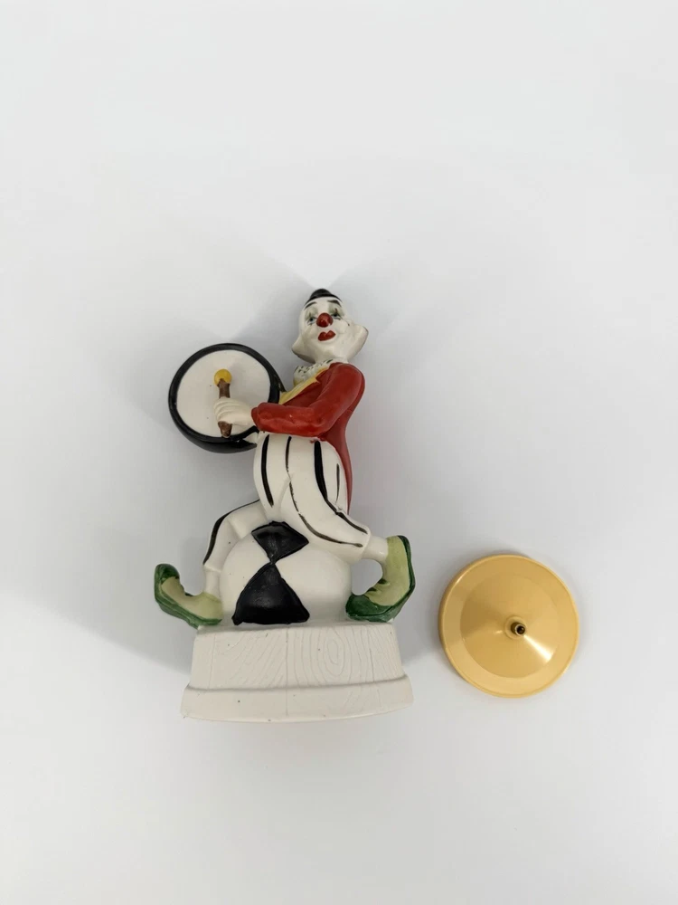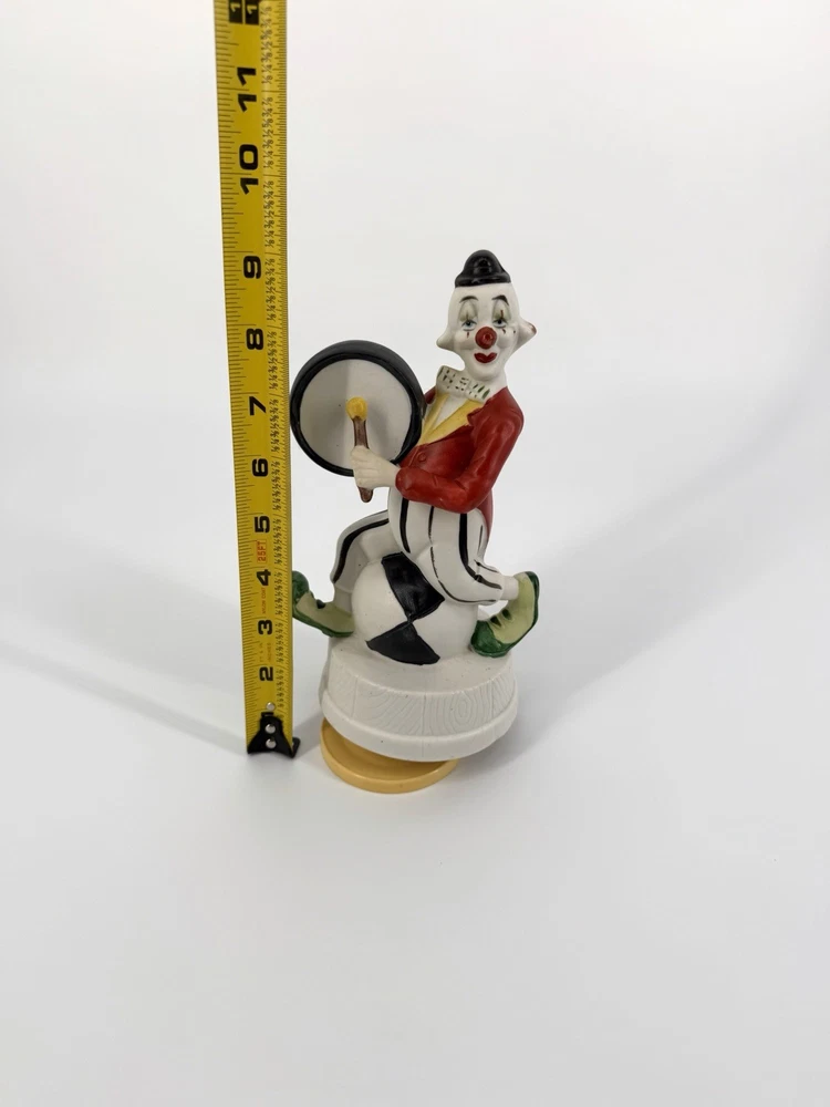 This unique Clown Wind-Up Music Box Figurine features a whimsical design with a red jacket, striped pants, and green shoes. Made in Taiwan in the 1970s, it combines vintage charm with a fun and playful aesthetic. The wind-up mechanism plays a delightful tune while the clown figurine adds a touch of nostalgia to any decor. Perfect for collectors or those looking to bring a playful accent to their space, this music box figurine is sure to bring joy and entertainment. ⚠️Important notes: – The item shown in the photos is the exact item you will receive. – Please review all photos carefully before purchasing. – If you have any questions, feel free to message us before buying. Thank you for your interest and for supporting our business. Your purchase is truly appreciated