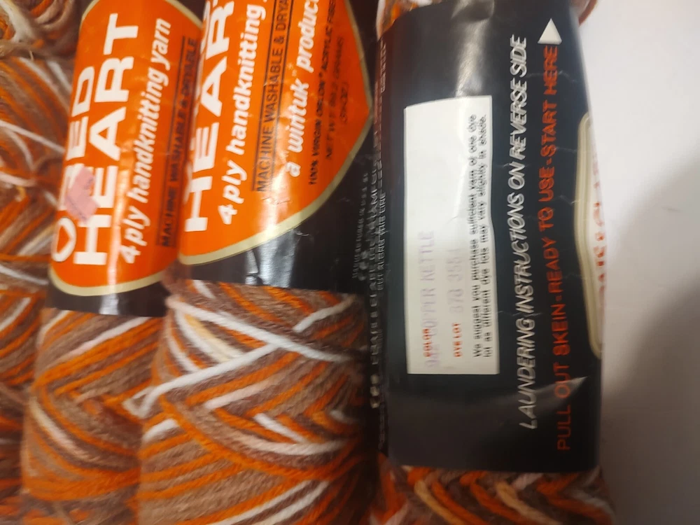 This lot of Red Heart Yarn comes with 6 skeins of 942 Copper Kettle Orlon/Acrylic fiber content, perfect for your knitting or crocheting needs. The vintage style and medium/worsted weight make it a versatile addition to your yarn collection. The brand, Coats & Clark, is known for their high-quality and durable yarns, making this lot a reliable choice for your crafting projects. The color is a beautiful Copper Kettle, sure to add a touch of warmth to any project. 5 skeins are new one is used but still weighs 2.15 ounces. Combined shipping available if items are purchased together at the same time. Thanks for looking.