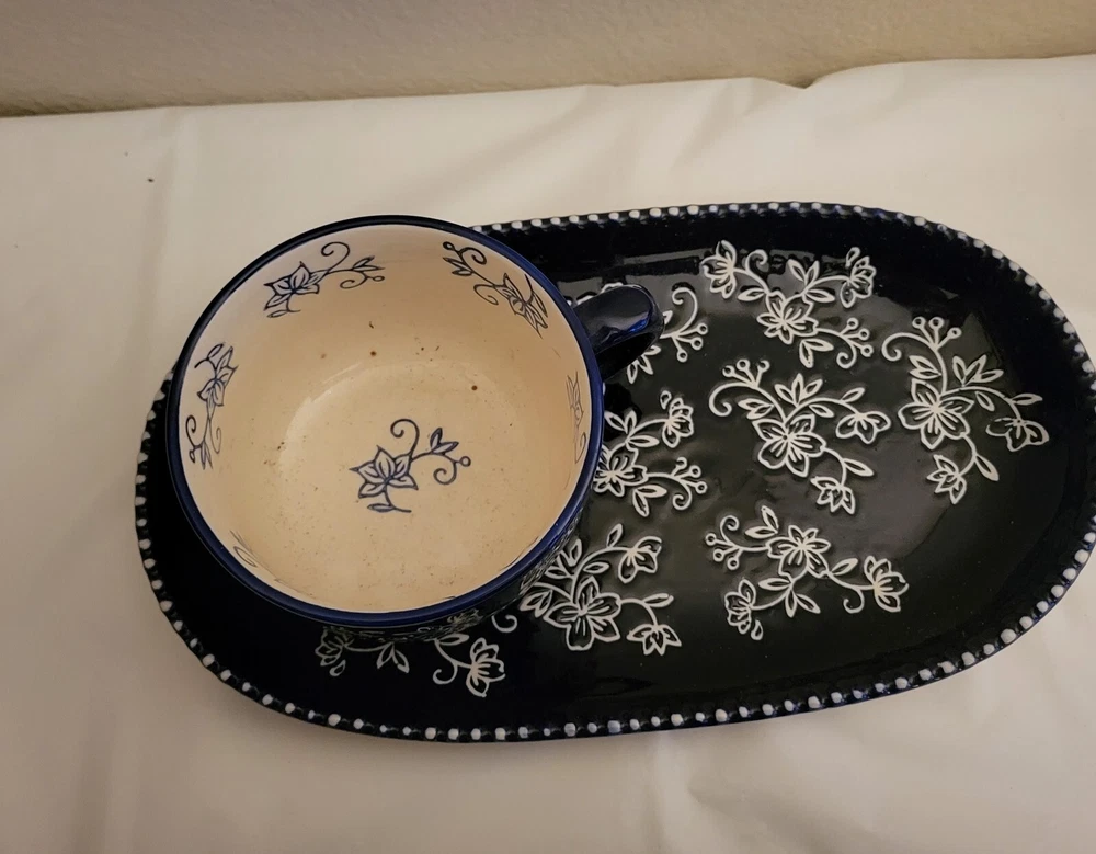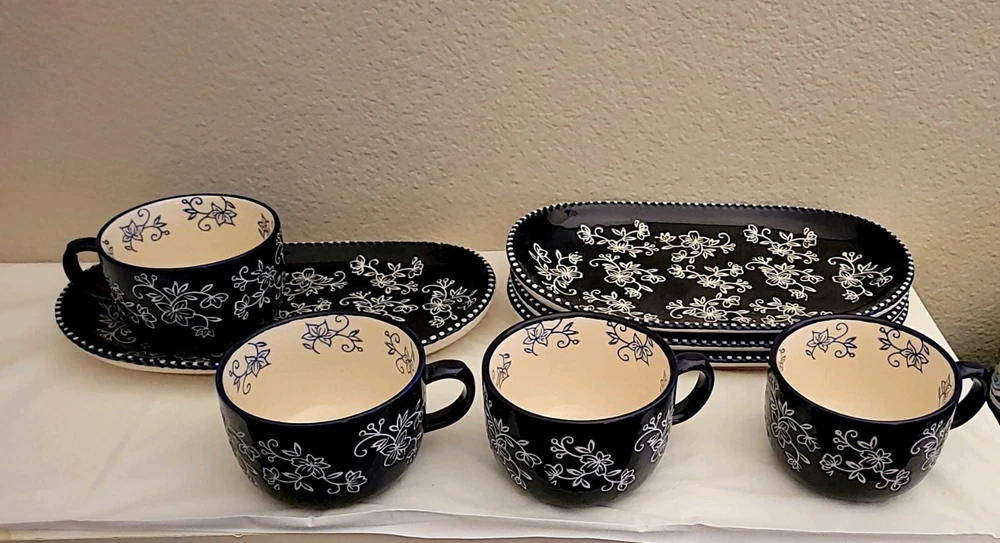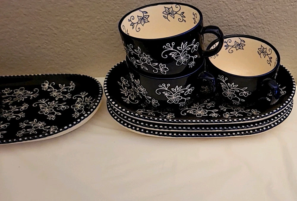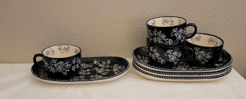 Add a touch of elegance to your dining table with this beautiful set of four cobalt blue floral soup bowls and sandwiches plates. The intricate floral pattern adds a charming touch to any occasion, whether it's a formal dinner party or a casual family gathering. Crafted from high-quality ceramic, these plates and bowls are durable and perfect for everyday use. The set includes eight pieces, with four soup bowls and four sandwiches plates, all of which are printed with a backstamp. The vintage design and flower theme make these plates and bowls a great addition to any collection. Made in China, this eight-piece set is perfect for all occasions and is sure to impress your guests.