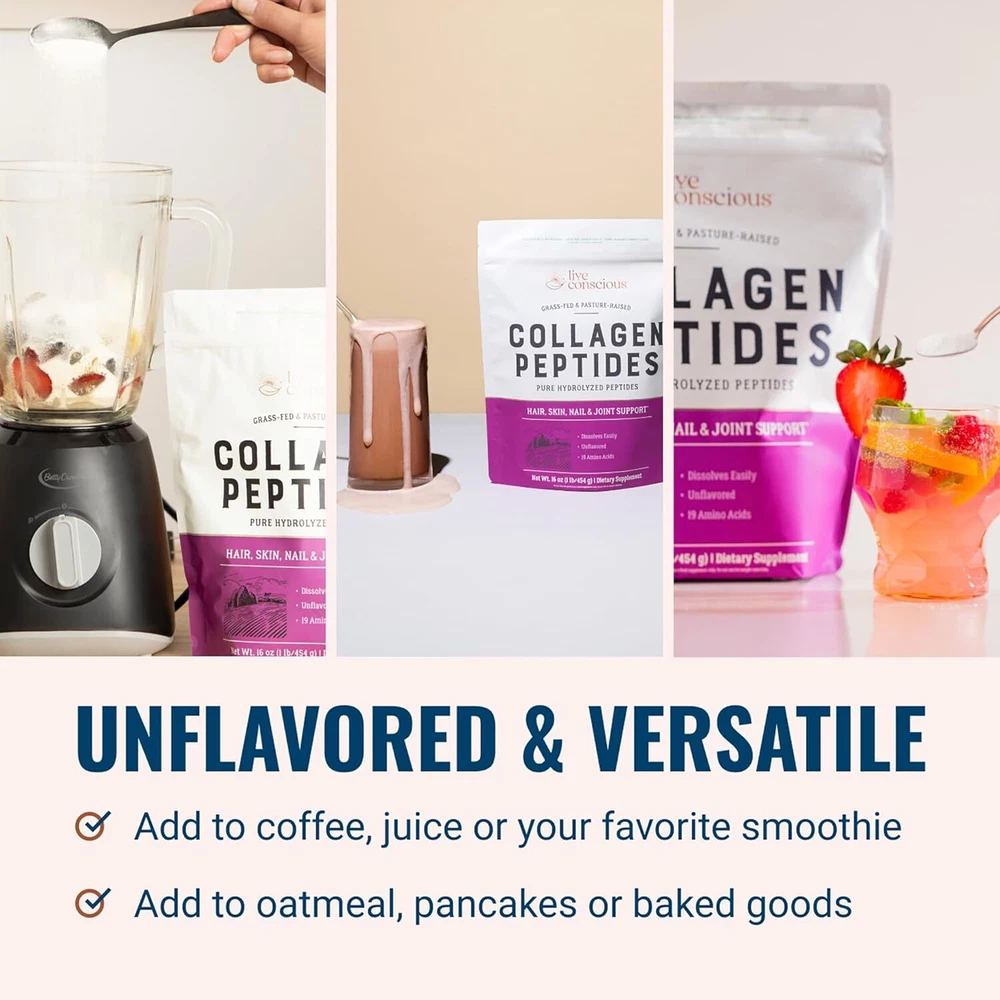 Collagen Peptides Powder - Naturally-Sourced Hydrolyzed Collagen Powder - Hair, Skin, Nail, and Joint Support - Type I & III Grass-Fed Collagen Supplements for Women and Men - 16oz Replenish Your Skin, Hair, and Nails — Collagen peptides for women can help revitalize skin, strengthen hair, and renew nails.* These benefits contribute to a more youthful appearance you’ll love.* Rejuvenating Power — When you look healthier, you take years off your appearance.* Natural Taste — While some customers take no notice, since everyone's palate is different, the Live Conscious Collagen Peptides naturally-sourced formula may have a mild taste that you would most prefer adding to your favorite smoothie. Premium Ingredients — For the best results, you need the best ingredients. LiveConscious labs uses hydrolyzed collagen peptides from bovine sources certified as grass-fed and pasture-raised. LiveWell Hydrolyzed, type I & III Collagen Peptides are sourced from grass-fed, pasture-raised, Grade A bovine, and certified hormone-free and 100% non-GMO. Containing 19 naturally occurring amino acids, Collagen Peptides are enzymatically formulated for enhanced bioavailability and absorption to support bone and joint health, strengthen hair, skin, and nails, improve gut and immune function, and benefit the body's overall cellular structure, so you can live well. Shipping We offer FREE shipping on all orders! We ship within Three business days of payment, usually sooner. We use a selection of shipping services such as UPS, FedEx, USPS etc. We only ship to the lower 48 states, no APO/FPO addresses or PO Boxes allowed. Local pickups and combined shipping options are not provided at this time. Return You can return a product for up to 30 days from the date you purchased it. Any product you return must be in the same condition you received it and in the original packaging. Please keep the receipt. Payment We accept payment by any of the following methods: PayPal Please pay as soon as possible after winning an auction, as that will allow us to post your item to you sooner! Feedback Customer satisfaction is very important to us. If you have any problem with your order, please contact us and we will do our best to make you satisfied. Contact Us If you have any queries, please contact us via ebay. We usually respond within 24 hours on weekdays. Please visit our eBay store to check out other items for sale! Thank you for shopping at our store