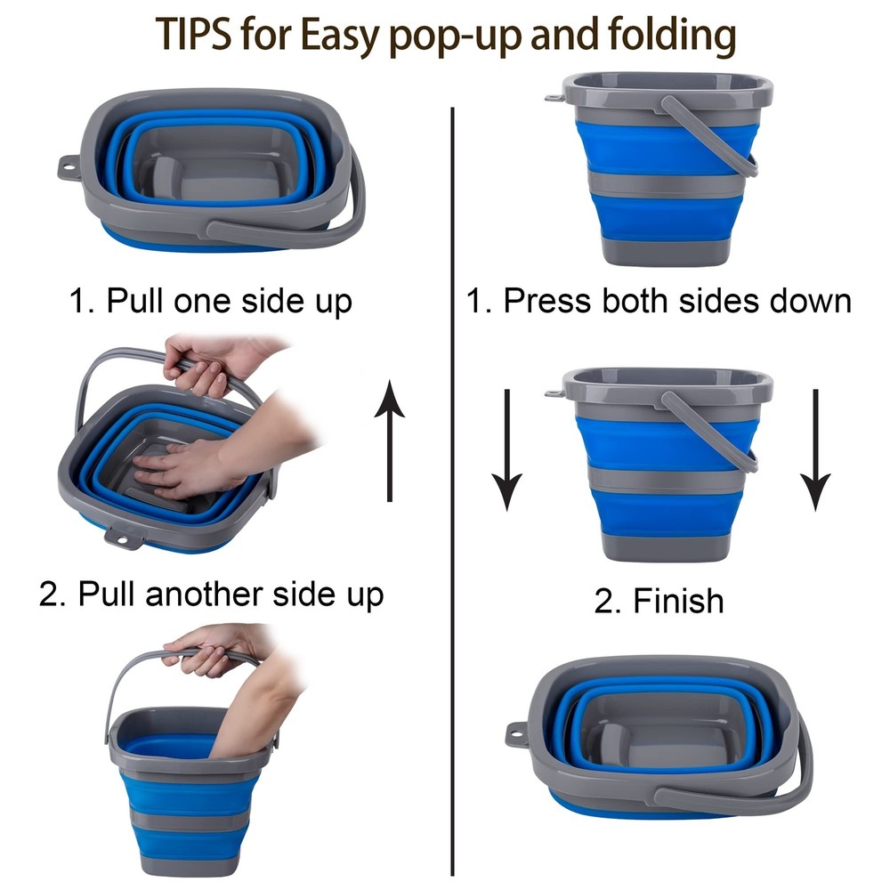Collapsible Bucket with 1.32 Gallon (5L), Small Plastic Bucket for Sand or Beach, Portable Water Bucket for Cleaning, Fishing Water Pail - Buy Now with Fast Shipping! Collapsible Bucket with 1.32 Gallon (5L), Small Plastic Bucket for Sand or Beach, Portable Water Bucket for Cleaning, Fishing Water Pail Product Details Brand: Tiawudi Color: Orange Material: Plastic Item Weight: 13.7 Ounces Product Dimensions: 7.88"H Capacity: 1.32 Gallons Handle Material: Thermoplastic,Tpr,Plastic,Rubber Shape: Rectangular With Lid: Yes Manufacturer: Tiawudi Brand: Tiawudi Color: Orange Material: Plastic Item Weight: 13.7 Ounces Product Dimensions: 7.88"H Capacity: 1.32 Gallons Handle Material: Thermoplastic,Tpr,Plastic,Rubber Shape: Rectangular With Lid: Yes Manufacturer: Tiawudi Special Feature: Collapsible and Space-Saving Design Package Information: Collapsible Bucket Item Weight: 13.7 ounces Country of Origin: China Item model number: KC08615J Date First Available: June 24, 2021 Key Features ✅ BPA Free: Our collapsible bucket is in thermoplastic rubber (TPR) construction that is BPA free and dishwasher safe. ✅ Durable: Sturdy, plastic rim and base provide for additional stability. Durable carrying handle makes it easy to move when filled. Precise spout to guide water flow, you wont mess up. With grip on the bottom to allow easy and controlled pouring. ✅ Foldable and Space-Saving: This unique portable pop-up design is suitable to keep in your home, garage, or packed in the car with your camping gear. With hanging hole for easy hanging on the wall. Dimensions: 10(L) x 10"(W) x 7 7/8"(H), Collapsed: 2(H). 1.32 Gal / 10 L capacity. ✅ Lifetime Guarantee: We are so confident in the quality of our collapsible bucket that we offer you a lifetime guarantee. Reach out to us if theres ever anything you need; we are dedicated to your satisfaction. Product Description Collapsible Bucket Strong, durable, and flexible, the collapsible bucket is perfect for indoor or outdoor use. With durable carrying handle, it can be used as cleaning bucket for house or car, a wash basin for dishes or hands, ice bucket for drinks, storage container for your items for camping, hiking, boating, fishing and more! When finished using, it collapses compactly for easy storing.