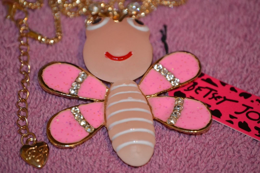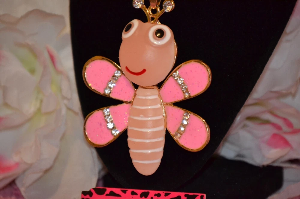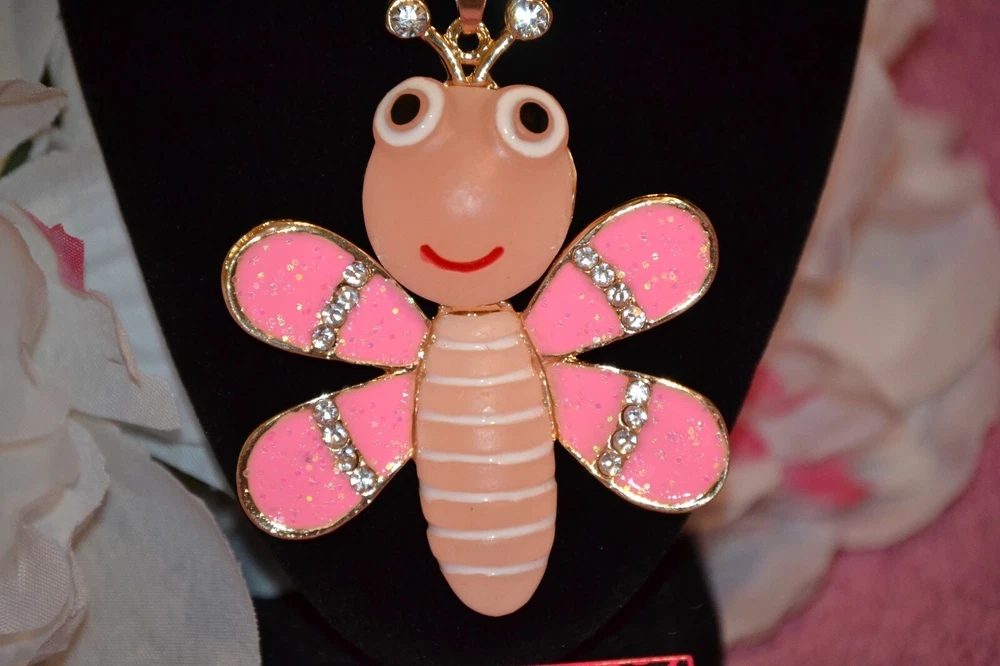 Betsey Johnson Pink Resin Crystal Big Bees Pendant Sweater Necklace. The chain is about 24" long. Pendant is 2 3/4" tall and 2 1/4" wide. Condition is New with tags. Shipped with USPS First Class Package. Any ??? Just ask!!!! Check out my other items!!!!