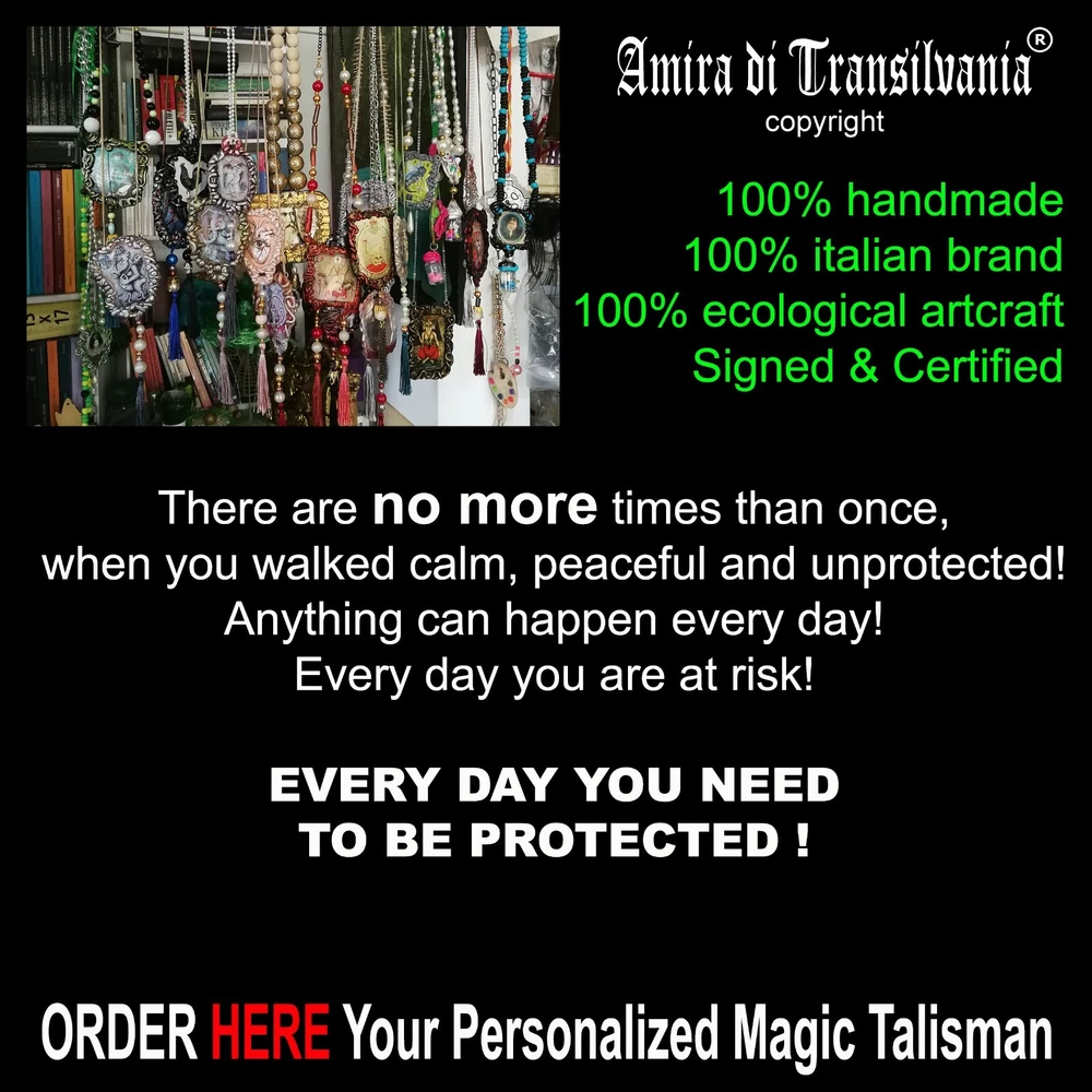 Honey Bee Flower Lucky Talisman attraction Fortune Money Amulet Pendant Necklace , Lucky Talisman Power Attraction Fortune Amulet Money Pendant Effective Talisman Lucky Necklace Attraction Amulet Power Pendant Fortune Talisman Money Amulet Lucky Charm Attraction Pendant Effective Amulet Fortune Necklace Money Talisman Power Necklace Lucky Amulet Attraction Necklace Effective Pendant Fortune Charm Jewel of art, handmade, BEE SYMBOL - Abundance & Richness. 100% handmade in Italy by the artist Amira Munteanu Bergmann. "Amira di Transilvania" brand. Handcrafted talisman, in resin and ceramic, size approx 8-9 centimeters. +1 E-book with instructions to activate it. Product registered as patent and trademark "Amira di Transilvania". Reproduction prohibited !!! Certificate and with the artist's archive number. This talisman is a small sculpture made by me in "bisque" ecological resin with an artistic print of an original painting, created by me Possibility of customization at no additional cost. Let me know in advance if you want your name on the package or if you want a particular color. I create customized Talismans according to the most demanding requests. Handcrafted gift box and FREE tracked transport (included in the price). DESCRIPTION: AMIRA DI TRANSILVANIA '' is a brand and a 100% made in Italy monobrand shop signed by Amira Munteanu Bergmann, artist, actress and entrepreneur as well as passionate and curious researcher, scholar and collector of any kind. ALL OUR PRODUCTS ARE COVERED BY COPYRIGHT, and the reproduction, even if partial, of our products and our images is forbidden. Any violation of intellectual property will be sanctioned in accordance with the law. We have no dealer in the world, all our products are sold only and exclusively in our stores. THE MISSION OF THE BRAND is to evaluate the craftsmanship of Made in Italy, talent and workforce of Creatives and Designers who work by hand in Italy, in a sustainable and ecological way. re-evaluating local production and fighting against the mass consumerism that exploits external labor losing control of product quality. No products in our shop have been purchased elsewhere and resold! All the production from A-Z is fully signed '' AMIRA DI TRANSILVANIA ''. The complete satisfaction of the needs of all our customers is our main goal HOW ARE THEY MADE? All the products in our shop are 100% handmade in Italy with the utmost care for the environment and the consumption of resources. For this reason our productions are in limited series, made entirely by hand, drawn, designed, painted, cut and modeled by hand in ecological and eco-sustainable materials. For this reason there will never be two perfectly alike objects. Each product you buy is unique and you will receive it accompanied by a certificate of guarantee and originality with an archive number in your name! Our shop respects all the criteria of environmental sustainability, craftsmanship and uniqueness, therefore. del verro LUXURY 100% MADE IN ITALY. ; PERSONALIZED PRODUCTS. At no additional cost you can order your personalized, unique and unrepeatable art object, dedicated only to you and made in a short time according to your indications and requests. Including the personalized gift box. We also provide you with interesting gift ideas. We are able to satisfy all your needs! CONTACT US and you will get our FREE consultation' CUSTOM ORDER AVAILIBLE FOR 99 % OF OUR PRODUCT ! PERSONALIZED BOX and GIFT BOX AVAILIBLE SERVICE for all products purchased at full price (without asking for a discount)