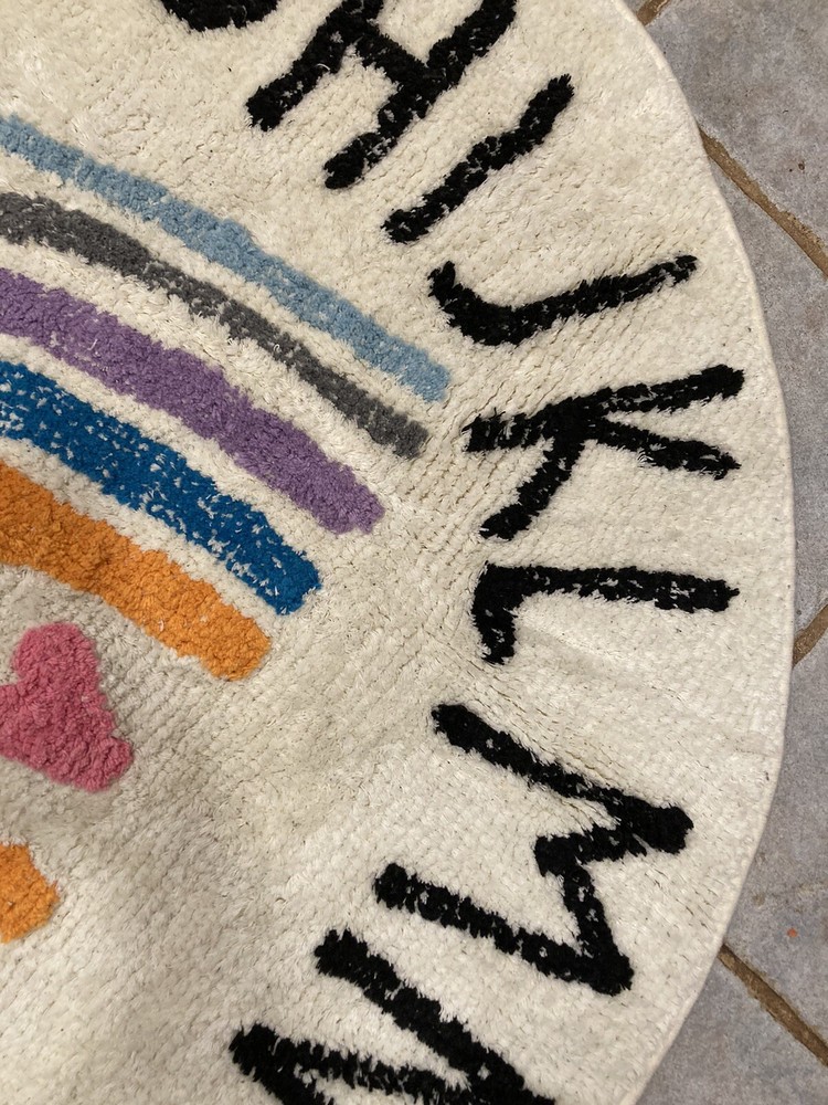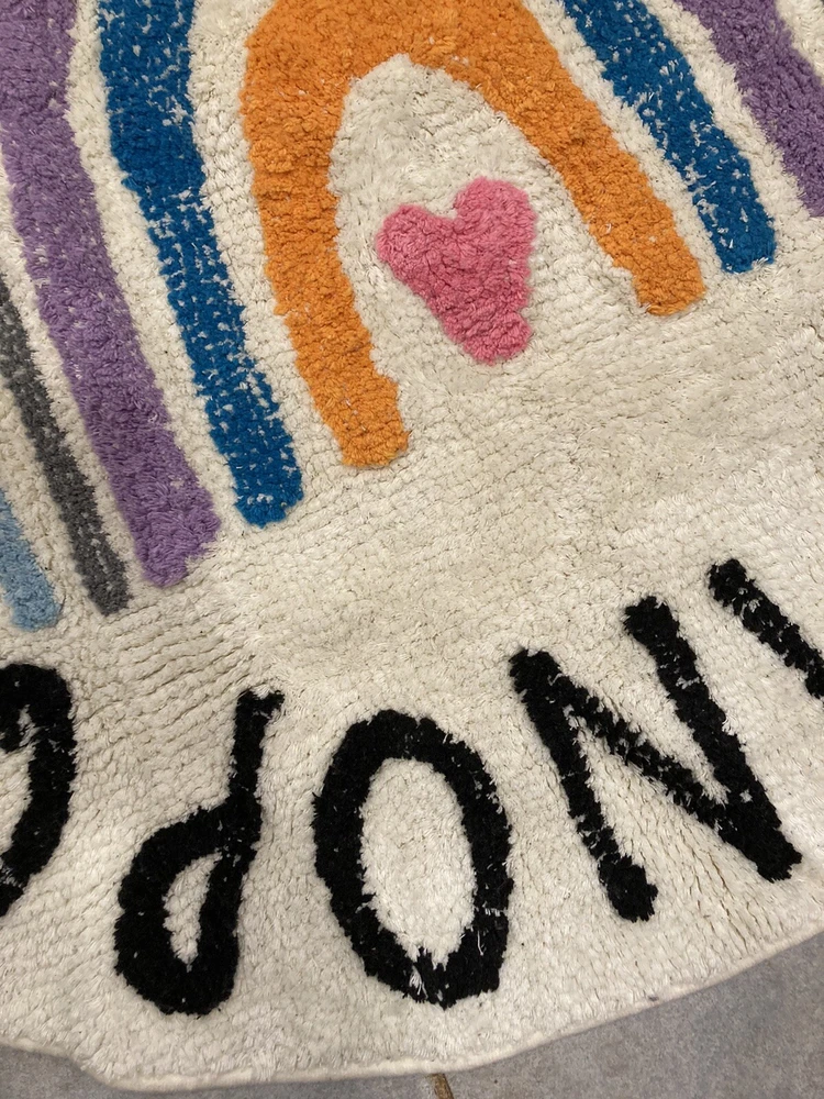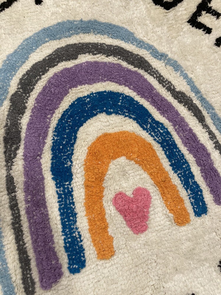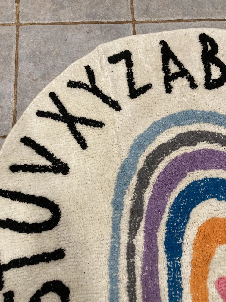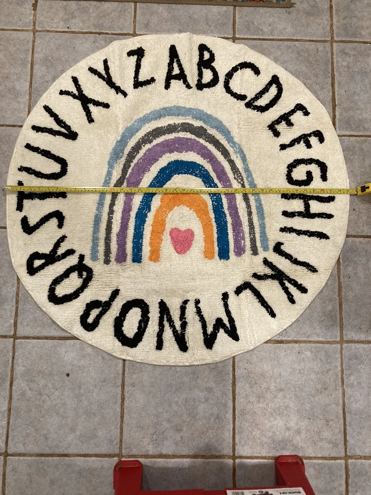 Get ready for a colorful and educational addition to your nursery or playroom with this ABC Alphabet Rainbow Round Rug Play Mat. Made of quality cotton material, this rug is designed to be both durable and comfortable for your little one. With a vibrant multicolor design and the entire alphabet displayed in both uppercase and lowercase letters, this rug is perfect for teaching your child letters and colors in a fun and engaging way. Made in China, this rug is suitable for both boys and girls, making it a great choice for any nursery or playroom. Measures 39 inches.