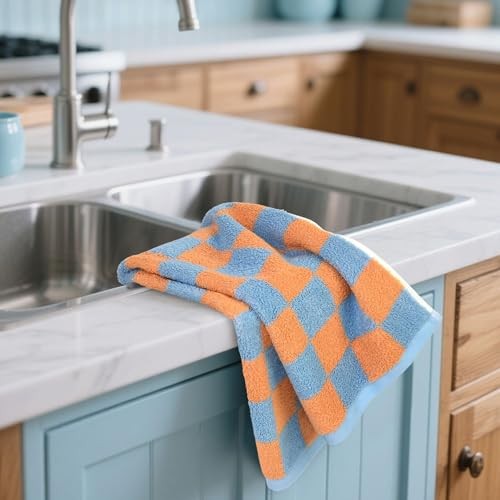 Return Policy Fast Delivery Trusted seller Checkered Kitchen Towel Set of 2 (Orange and Blue) - Soft Cotton Terry Cloths for Drying Hands & Decorative Use, Farmhouse Fall Kitchen Decor, 13” x 28” Product Description Cute Kitchen Towels: Set of 2 kitchen towels in bold blue & orange checkerboard design add warmth and personality to your kitchen. The retro-inspired colors work beautifully for fall setups, cozy homes, or farmhouse kitchens Soft & Quick Dry Terry Cotton: Crafted from long-looped terry cotton, these soft towels are gentle on skin and highly absorbent, perfect for kitchen hand towel or light kitchen tasks like wiping countertops or sweat after cooking Sized for Everyday Use: Each kitchen rag measures 13” x 28”, perfect for hanging on oven doors, towel racks, or pantry hooks. Practical tea towels for light-duty cleanup or decorative towels layering near the sink Practical & Fun Gifts: With a classic pattern and smooth texture, these cotton kitchen towels set make a thoughtful gift for housewarmings, weddings, hostess presents, or holiday baskets. They're also a functional treat for yourself Multi-Use: Though designed for the kitchen, these checkered towels are also great as decorative guest towels, bathroom hand towels, RVs, camp, or travel cloths Shipping Returns Payment Shipping Shipping is FREE to all addresses other than APO/PO boxes in the lower 48 states. All our stock ships from US-based warehouses. Shipped via USPS or UPS (depending on location and package weight) Unless stated otherwise, all orders will ship within 24-72 hours of your payment being processed. Check our feedback to see the great reviews of FAST shipping we offer. Returns Seller does not accept returns Payment We currently accept payment via eBay managed payments only. Once payment is cleared, we will dispatch your shipment within 1-3 business days. Please refer to the "Shipping" tab for more information regarding shipping speed to your destination.