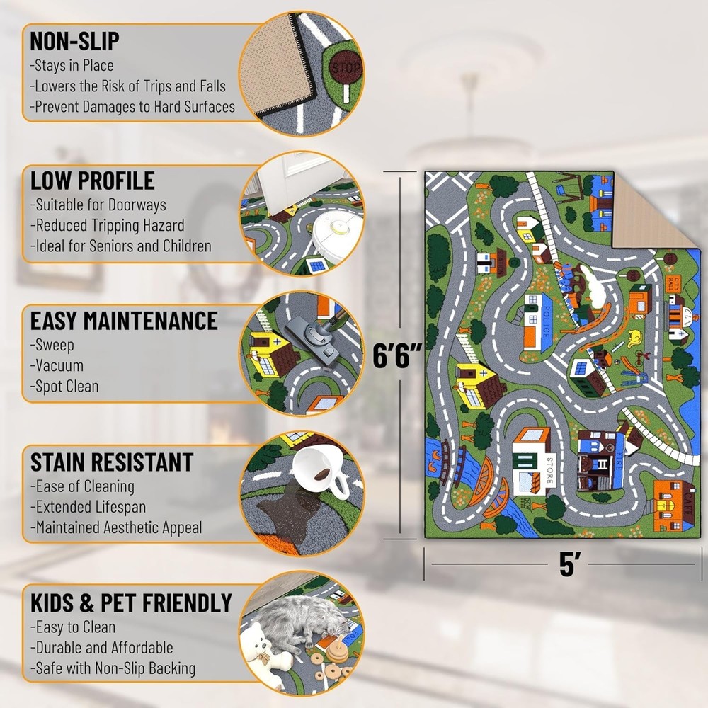 Multicolor Kids Road Map Rug 5' x 6'6" - Interactive Play Mat for Daycare & Home ‹ › ‹ › ‹ › ‹ › ‹ › ‹ › ‹ › ‹ › ‹ › ‹ › ‹ › Multicolor Kids Road Map Rug Size: 5' x 6'6" (5' x 7') Thickness: 0.2 in Color: Green/Multicolor Features: Ultra Thin: With a pile thickness of just 0.2 inches, this rug is designed for busy areas, fitting seamlessly under furniture and in entryways without obstructing doorways. Non-Slip & Stain Resistant: Crafted from high-quality Polyamide material sourced from Turkey, the rug features a rubber backing that minimizes slipping while ensuring comfort. Additional grip can be achieved with a separate rug pad purchase. Trendy Style: This colorful educational town traffic play design area rug showcases a vibrant hopscotch pattern, making it a delightful addition to any space. Its timeless design fits effortlessly into various home décor styles. Kid & Pet Friendly: Constructed to withstand everyday wear and tear, this rug is perfect for high foot traffic areas and resists the unpredictable messes stemming from kids and pets. Why Choose Our Multicolor Kids Road Map Rug? Transform any space into a vibrant playground with our Multicolor Kids Road Map Rug! Ideal for daycare, playrooms, or the comfort of your home, this rug combines education with fun. It's safe for your little ones and furry friends, adding a splash of color while ensuring durability. Made with love and care in Turkey, our Jenny Collection features rugs that enhance your home's style without compromising safety. Order today and bring a world of adventure and creativity into your home! Shipping Free & Fast Shipping - We offer free shipping to most of the USA with a normal delivery time of 3-10 businessdays. However, due to various situations, additional delivery time (up to 3 weeks) may be required for some items. Alternative Carriers - We may use alternative carriers (e.g. USPS, FedEx, UPS, etc.) to ensure your package arrives safely and on time. Due to the use of multiple carriers, we are unable to provide a tracking number automatically. Handling Time - Orders are processed and shipped within 1-5 business days of receiving cleared payment. Shipping Restrictions - Shipping to Alaska, Hawaii, Puerto Rico, Guam, and other US territories may incur shipping charges or delivery restrictions. Please contact us before ordering, or your order can be refunded/cancelled. State Restrictions - There may be restrictions based on your state of purchase. For example, certain items may not be shipped to California due to state regulations. Contact for Tracking Updates - If you require tracking updates or have any concerns about the delivery of your order, please feel free to contact us, and we will be happy to assist you. Return Please see our ebay return policy. We do not accept return on most products. This is to avoid customers mis-using ebay returns. All sales are final. Please be sure to check the return policy listed at the top of the listing. In rare cases, we may accept returns, if the buyer pays both ways shipping and 20% restocking fee. If you are un-sure of return policy of a particular item, please ask before buying. Payment We accept all major credit cards, PayPal, and Apple Pay for your convenience. Your payment information is secure and encrypted to ensure a safe and seamless transaction. Please complete your payment within 3 days of purchase to avoid any delays in shipping. Feedback Your feedback is extremely important to us. We strive to provide the best products and customer service possible. If you are satisfied with your purchase, please take a moment to leave us a positive review. If you have any concerns or issues with your order, please contact us before leaving negative feedback. We are committed to resolving any problems and ensuring your satisfaction. Contact Us If you have any questions or concerns, please feel free to reach out to our customer support team. You can contact us through the eBay messaging system. We are available Monday to Friday, 9:00 am to 5:00 pm EST, and we will do our best to respond to your inquiry within 24 hours. Buy it now and enjoy a pleasant shopping experience! MPN: Kids_Play_Mat UPC: Not Set Model: Not Set Pattern: Cartoon Style: educational traffic Theme: Educational Age: Infant,Toddler Features: Non-Slip,Interactive,Durable,Machine Made,Stain Resistant,Low Pile,Water Resistant,Lightweight,Washable,Fade Resistant Department: Baby Brand: Unbranded Type: Area Rug Color: Multicolor Shape: Rectangular