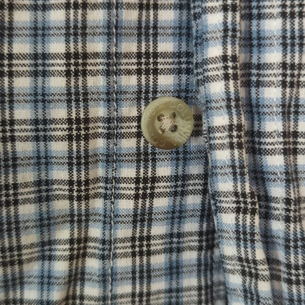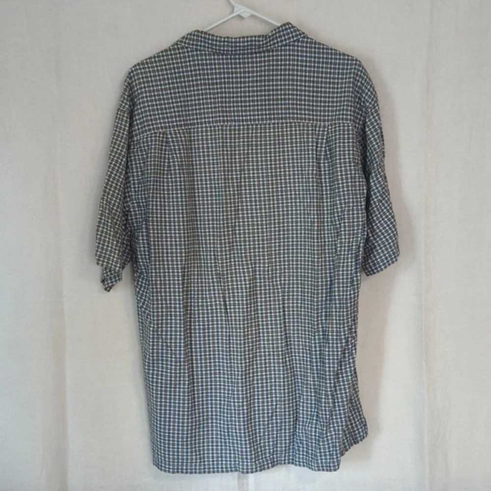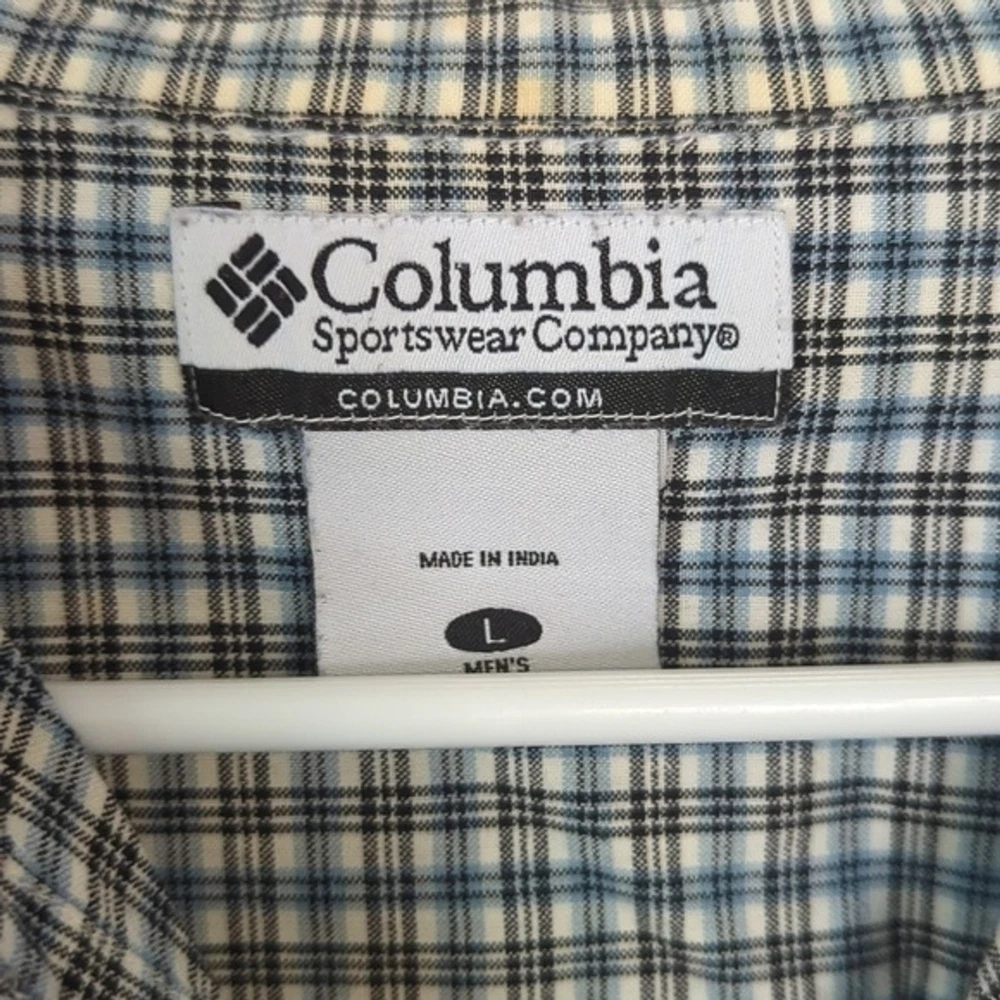 Columbia Sportswear size large blue white check plaid short sleeve 100% cotton full length button down single chest pocket excellent used condition measurements Armpit to armpit 23 length 28
