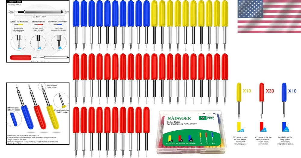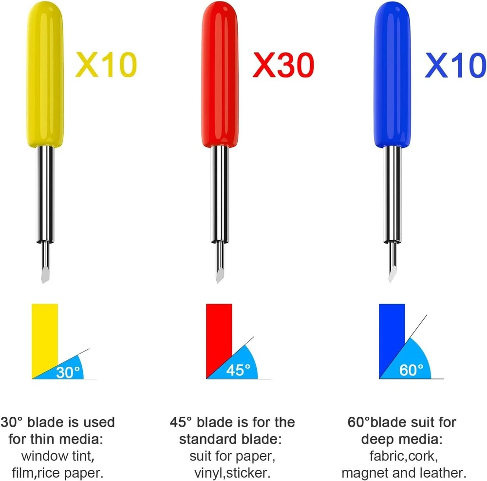Complete 50PCS Replacement Cutting Blade Kit - Compatible with Explore Air 2/3 ‹ › ‹ › ‹ › ‹ › ‹ › ‹ › ‹ › ‹ › ‹ › Complete 50PCS Replacement Cutting Blade Kit -Compatible with Explore Air 2/3 What's Included: 50 PCS replacement blades suitable for Explore Air and Maker series cutting machines. 10 PCS 30 degree fine point cutting replacement blades (yellow cap). 30 PCS 45 degree standard blades (red cap). 10 PCS 60 degree deep cut blades (blue cap). Features: Made from high-quality cemented carbide for improved sharpness and durability. Sharp, smooth cutting without dragging or skipped spots. Three different blade sizes for varied cutting needs. Wrapped in protective rubber covers for safe handling. Versatile Three Size Cutting Effect: 30° Blade: Perfect for thin media like window tint, film, and rice paper. 45° Blade: Ideal for standard materials such as paper, vinyl, stickers, and adhesive foil. 60° Blade: Designed for deep media, including fabrics, cork, magnet, leather, and thick card stock. Safety Tips: To prevent any accidental injuries, the blades come securely wrapped in protective rubber covers. Please ensure to carefully pull them out of the cover before use and adjust manually according to your cutting material needs. About Us: As a professional manufacturer of hardware products, we are proud to serve a community of 600,000 satisfied customers worldwide. With over 15 years of expertise, our engineers meticulously carve each blade under a microscope to ensure precision and quality. Our commitment is to deliver high-quality, economical carbide products tailored to meet your cutting requirements. Discover our comprehensive range in our flagship store and elevate your crafting experience. Shipping Free & Fast Shipping - We offer free shipping to most of the USA with a normal delivery time of 3-7 days. However, due to the current situation, additional delivery time (up to 3 weeks) may be required for some items. Alternative Carriers - We may use alternative carriers (e.g. USPS, FedEx, UPS, etc.) to ensure your package arrives safely and on time. Due to the use of multiple carriers, we are unable to provide a tracking number automatically. Handling Time - Orders are processed and shipped within 1-2 business days of receiving cleared payment. Shipping Restrictions - Shipping to Alaska, Hawaii, Puerto Rico, Guam, and other US territories may incur shipping charges or delivery restrictions. Please contact us before ordering, or your order can be refunded/cancelled. State Restrictions - There may be restrictions based on your state of purchase. For example, certain items may not be shipped to California due to state regulations. Contact for Tracking Updates - If you require tracking updates or have any concerns about the delivery of your order, please feel free to contact us, and we will be happy to assist you. Return 30-Day Hassle-Free Returns - We want you to be completely satisfied with your purchase. If you are not, you can return the item within 30 days of receiving it for a full refund or exchange. Easy Return Process - To start a return, simply contact us and we will provide you with a prepaid return shipping label and detailed instructions. Restocking Fee - There are no restocking fees for returns. However, the buyer is responsible for return shipping costs if the return is not due to a seller's error. Refund Processing Time - Refunds will be processed within 5 business days of receiving the returned item in its original condition. Payment We accept all major credit cards, PayPal, and Apple Pay for your convenience. Your payment information is secure and encrypted to ensure a safe and seamless transaction. Please complete your payment within 3 days of purchase to avoid any delays in shipping. Feedback Your feedback is extremely important to us. We strive to provide the best products and customer service possible. If you are satisfied with your purchase, please take a moment to leave us a positive review. If you have any concerns or issues with your order, please contact us before leaving negative feedback. We are committed to resolving any problems and ensuring your satisfaction. Contact Us If you have any questions or concerns, please feel free to reach out to our customer support team. You can contact us through the eBay messaging system. We are available Monday to Friday, 9:00 am to 5:00 pm EST, and we will do our best to respond to your inquiry within 24 hours. Buy it now and enjoy a pleasant shopping experience! MPN: Replacement_Cutting_Blades_for_Cricut UPC: Not Set Unit Quantity: 50 Features: Manual,Replacement cutting blades,Compatible with Explore Air 2,Compatible with Explore Air 3,Compatible with Maker,Compatible with Maker 3,3 different sizes of blades,45 degree standard blade,60 degree deep cut blade,Sharp and durable,Made of cemented carbide,Not easy to rust,Cuts cleanly with no dragging,No skipped spots,Adjustable for different materials,Used for thin media,Used for standard blade media,Used for deep media,Carved under a microscope Brand: Unbranded Type: Cutting Dies Model: Not Set Handmade: No Country/Region of Manufacture: Not Set Unit Type: Not Set