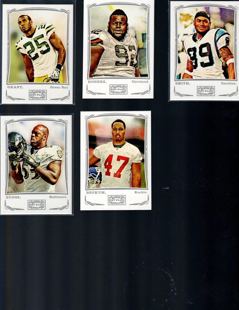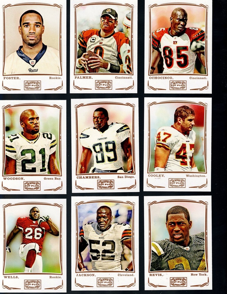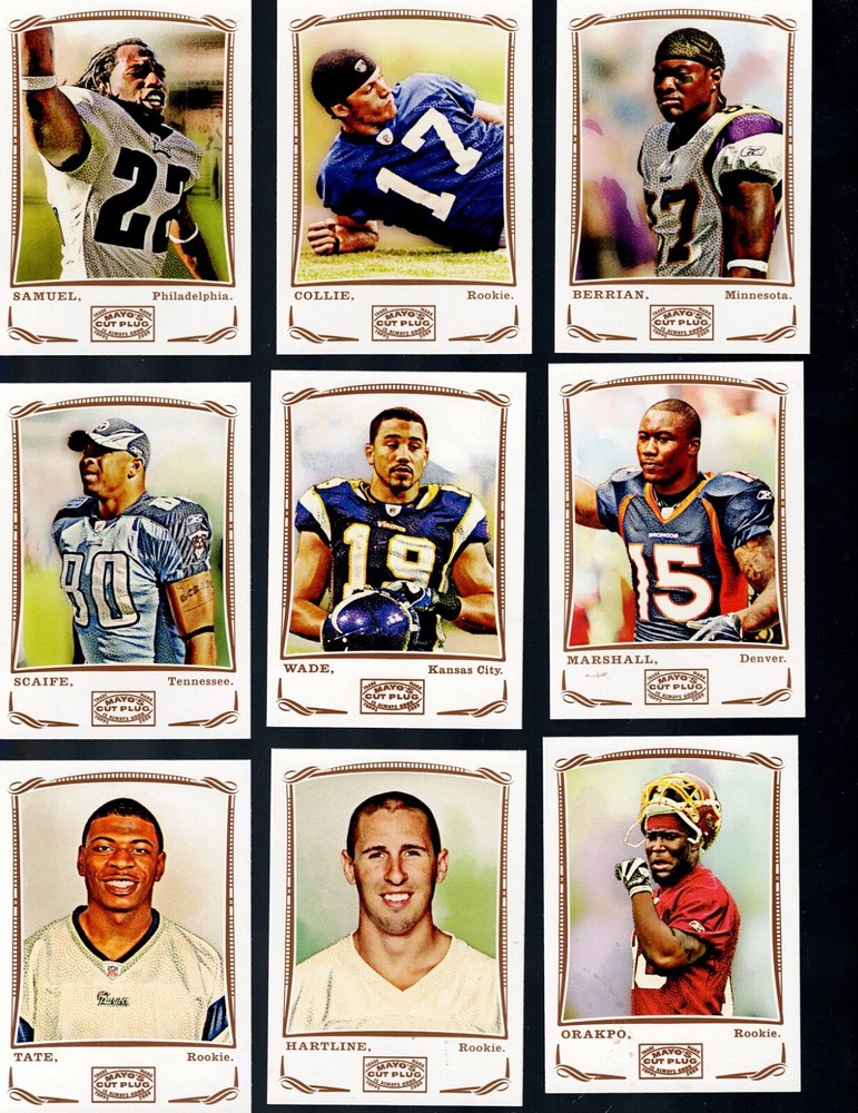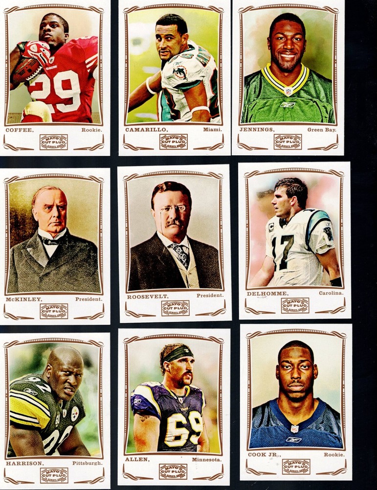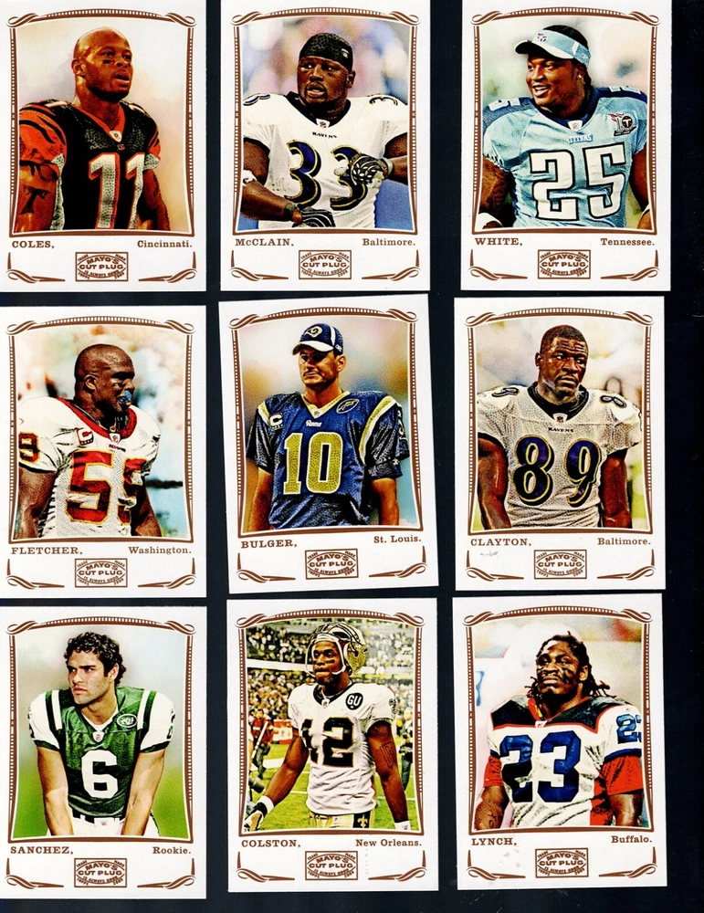 I am selling cards from the 2009 TOPPS MAYO football set. Cards are from a non smoking home. If you would like more pictures let me know.