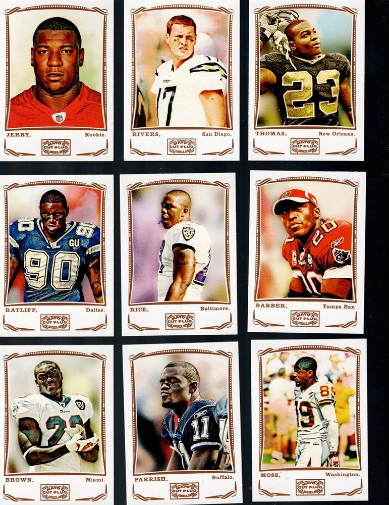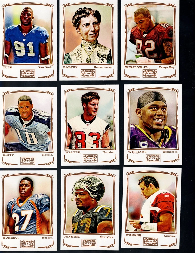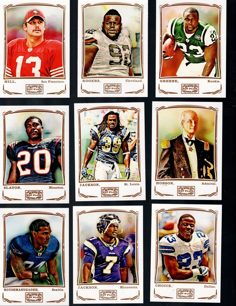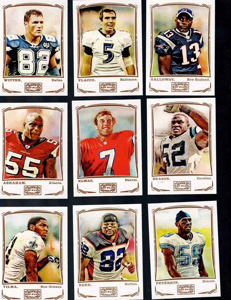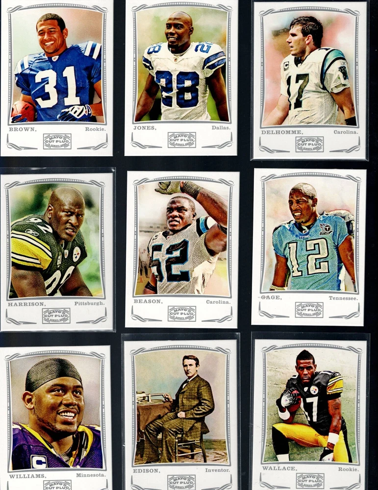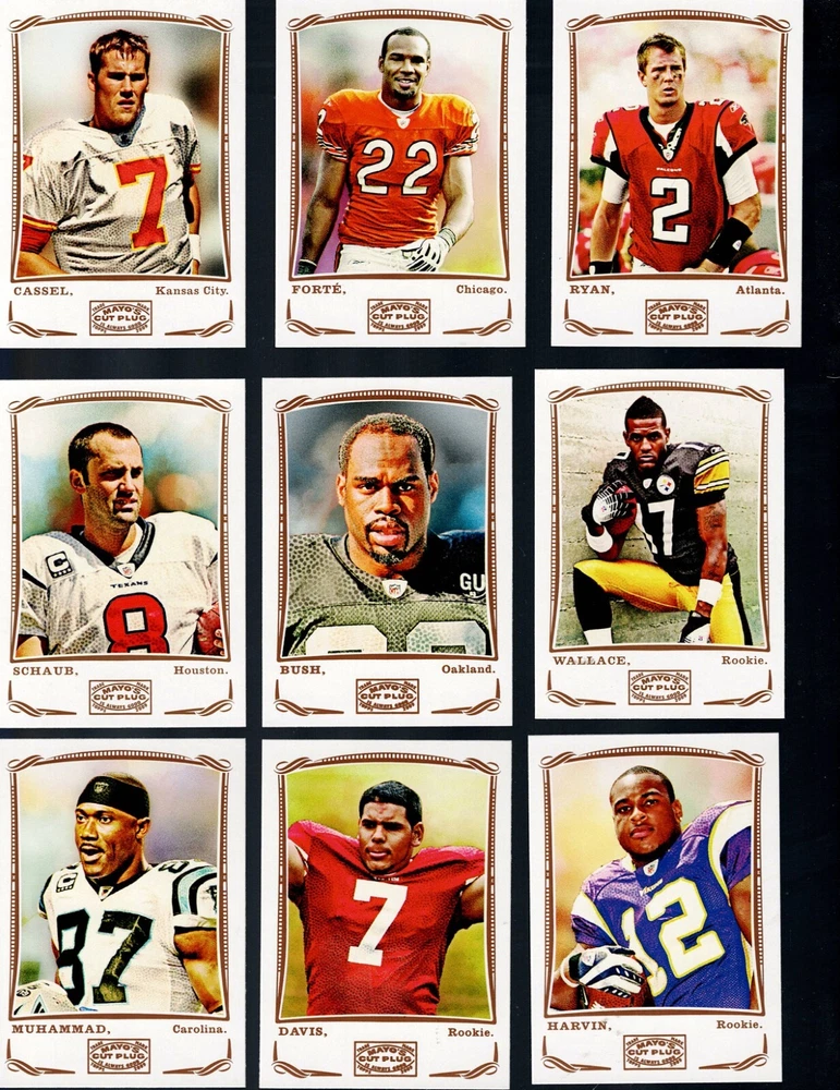 I am selling cards from the 2009 TOPPS MAYO football set. Cards are from a non smoking home. If you would like more pictures let me know.