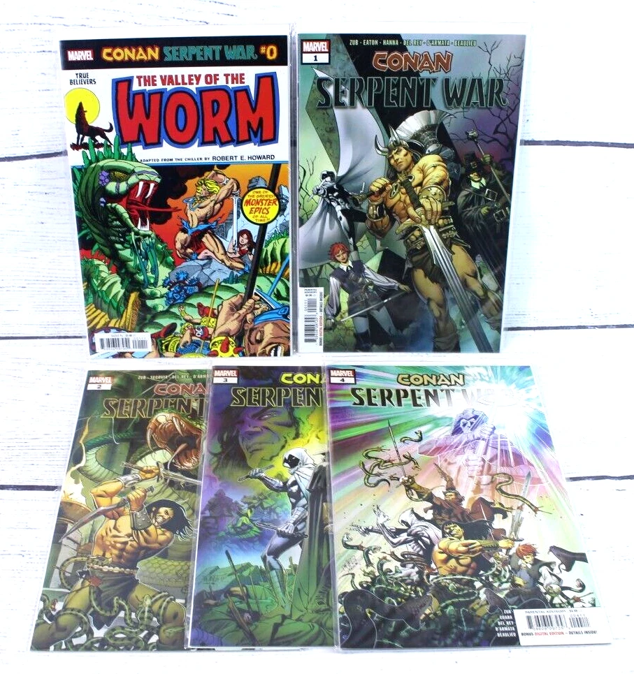 Conan Serpant War #0-4 Set Complete Comic Books Marvel Welcome to Our Store! Your Satisfaction, Our Goal: We're thrilled to have you here! Our mission is to make your shopping experience delightful from start to finish. If you have any questions or concerns, please let us know, and we'll do our best to assist you. Quick and Secure Shipping: Your eagerness is our priority! Most orders embark on their journey within 1-2 business days of payment. We'll make sure your items are carefully packaged for a safe and speedy arrival. Positivity Reigns: We're not just about products; we're about spreading good vibes! Join our community of positivity enthusiasts by sharing your thoughts and experiences. Your feedback keeps the good karma flowing! Connect with Us: We're here to chat, answer questions, or simply have a friendly exchange. Reach out through eBay's messaging system, and we'll be thrilled to engage with you! Thank you for choosing us. Your support lights up our shop! No Return Policy: We're committed to offering quality products and excellent service. However, please note that we currently have a no return policy in place for this item. We strive to accurately represent our items through detailed descriptions and images to ensure your satisfaction with your purchase. If you have any concerns about your order, please reach out to us, and we'll be more than happy to address any issues or questions you might have.