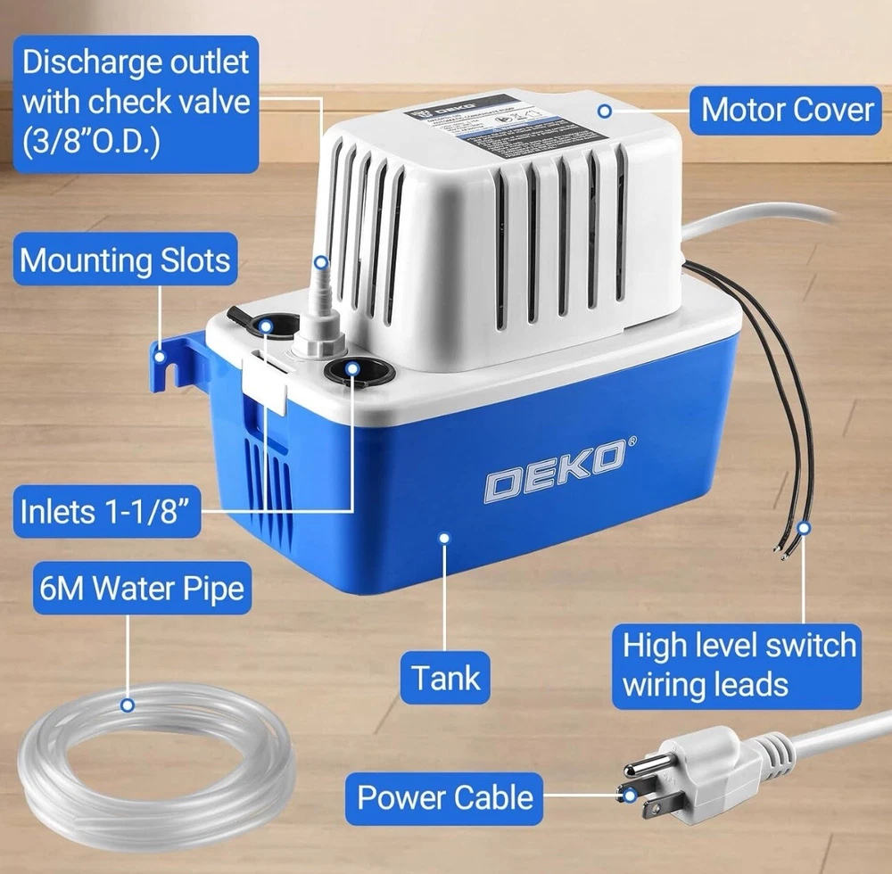 This automatic condensate removal pump is a must-have for your dehumidifier AC. It efficiently removes excess moisture from the air, ensuring that your home stays dry and comfortable. With its powerful suction, it can easily handle even the highest levels of humidity. Designed with ease of use in mind, this pump is easy to install and operate. It features a compact design that makes it ideal for use in small spaces. Whether you're looking to improve the air quality in your home or office, this condensate pump is the perfect solution.
