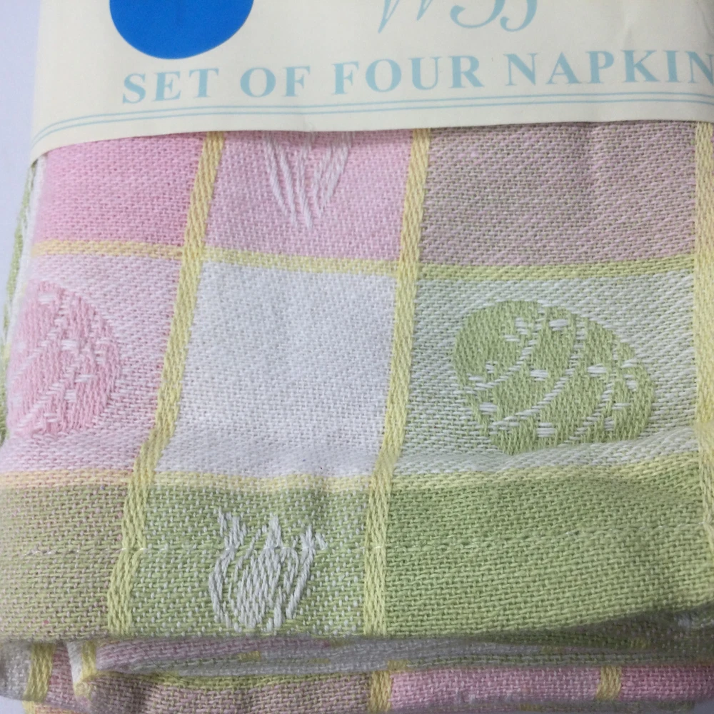 Cotton Table Napkins Set of 4 White Pink Green Spring Easter Eggs Tulips 18" x 18". New, still in package. Great condition. InvN/RS/2