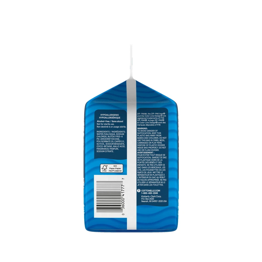 Enjoy a thorough clean with Cottonelle Fresh Care Flushable Wipes, the #1 Septic Safe Wipes Brand*. These adult wipes wash away odor-causing messes and remove up to 100% of residue, making them perfect for everyday use. With 3X the cleaning power, Cottonelle Fresh Care Flushable Wipes are designed to remove messes, reduce odors, and protect hands, leaving you feeling thoroughly clean. Each wipe is safe for sensitive skin and made with purified water. Our adult wipes are 100% flushable, septic safe, and plumber approved. Each resealable bag has 168 flushable wipes per pack with a tear-away sheet for easy access. Cottonelle is FSC certified, supports responsible forestry, and uses only 100% plant-based fibers. For more ways to clean, pair Cottonelle Flushable Wipes with Cottonelle toilet paper. Cottonelle Ripples clean better 1 resealable pack of Cottonelle Fresh Care flushable wipes, 168 flushable wipes per pack; Cottonelle flushable wipes packaging and products may vary Clean thoroughly: Cottonelle Fresh Care flushable wipes remove up to 100% of odor residue 3X the cleaning power: Our adult flushable wipes remove messes, reduce odors, and protect hands 100% flushable: Each wipe is sterile and breaks down like toilet paper* (*breaks down just as fast as Cottonelle Ultra Clean, breaking down at the same rate after 30 minutes) Safe for sensitive skin: Cottonelle disposable wipes are hypoallergenic, alcohol-free, and made with purified water Cottonelle wipes are FSC certified, support responsible forestry, and use only 100% plant-based fibers
