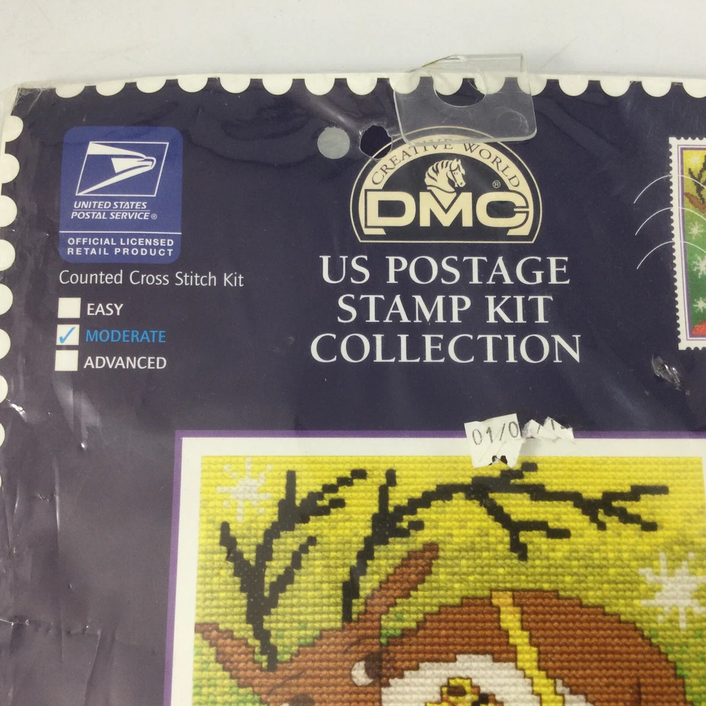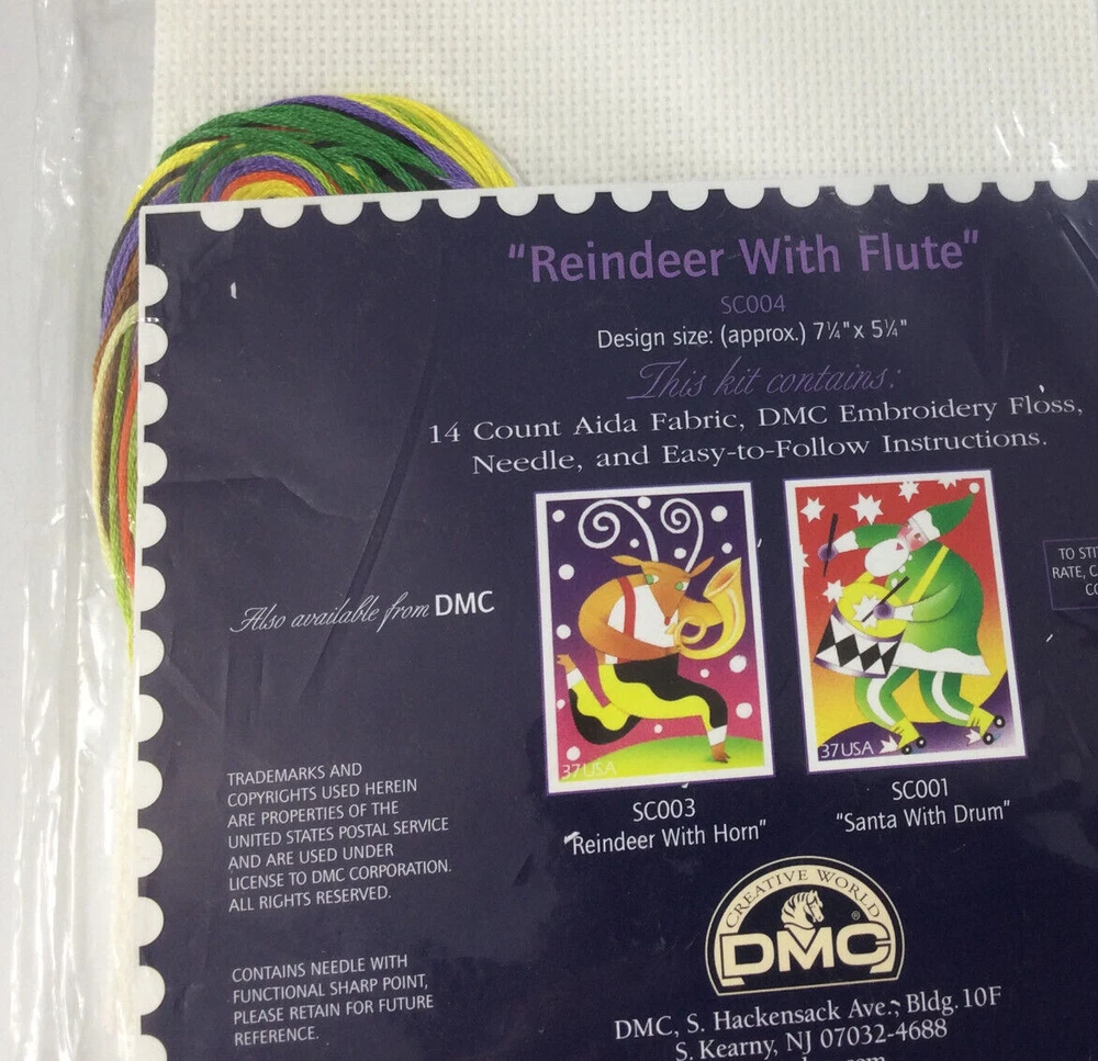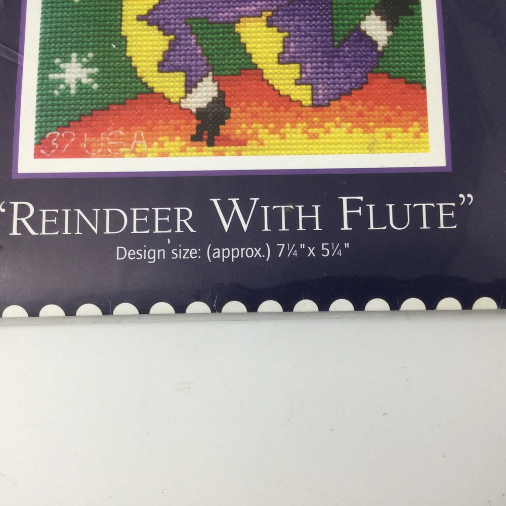 Counted Cross Stitch US Postage Stamp Kit Collection Reindeer with Flute 7 1/4" x 5 1/4". InvN/GS/1
