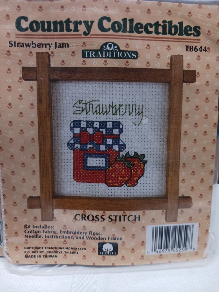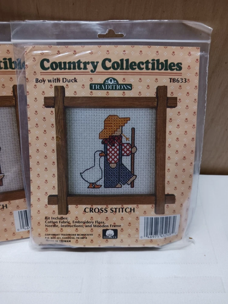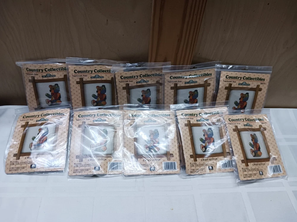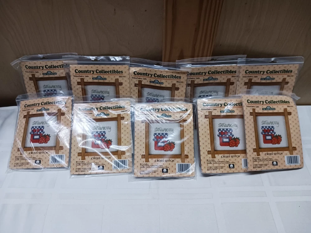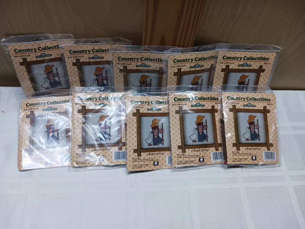 Traditions Country Collectables completr mini cross stitch kits. * old new stock*Sell out lots of 30 kits. Includes 10-Strawberry ,10-Patchwork Bear, 10-Boy with Duck. Vintage. Great for resale,gift giving, home creation. I gave them to the ladies at church and local nursing home gifts. Message me with any questions you may have.