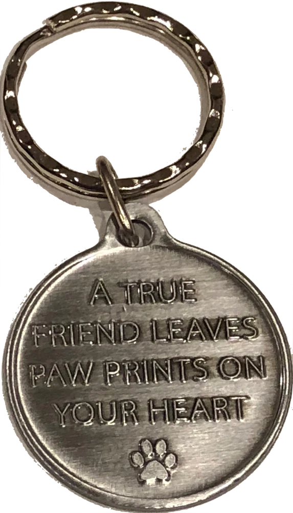 Crazy Cat Lady Heart Paw Print / A True Friend Leaves Paw Prints On Your Heart Key Chain Paw Print Design 3D Raised Graphics 33mm 1 5/16" Bronze Medallion Half Dollar Size 2.5" Total Length Great Pet Lover Gift Made In The USA