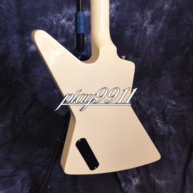 Cream White Explorer 70s Model Chrome Hardware Electric Guitar Red Pick Guard Welcome to my store. My team has been making musical instruments for many years. I will try my best to provide the best item for you! Goods condition Body:Mahogany Neck: Mahogany Fingerboard: Black Nut width: 43 mm Scale Length:24.7 inch Joint:Bolt on Hardware:Chrome Pickups:2 Humbuckers Pickup Switc h:3-ways Electronic:1 Volume 2 Tone Bridge:T-O-M ABOUT THE PICTURES The pictures are taken in our factories by ourselves. Each guitar is different from others because of the light in room or some other reasons .So there are maybe some differences between the pictures and the guitar you get. Every guitar cannot be the same in 100%, the pictures of the guitar that you see is just one of them. If you want some details about the guitar, please contact me. OUR GUARAN TEE We test every guitar (such as buzzing, sound test, workmanship) is in good condition before it is shipped out. When you receive the guitar, if you meet some problems like readjustment the strings or you are not happy with our guitar, please let me know immediately and we will try our best to meet you satisfaction. CUSTOMIZED CEN TER Head stocks are not pictured per our policy. Custom Head stocks are available upon request from our factory custom shop. Please contact us for details. All customized products are non-returnable. SHIPPIN G Once payment has been confirmed, your item will be shipped within 3 or 30 business working days. That depends on specific goods deliver ways.The speed also base on Custom Clearance Speed, which we can't control .So if you want this for your gig next weekend it probably wont make it on time, so please keep that in mind when ordering. PACKI NG We use the carton which is designed for the International transport to package the products you ordered. And we can guarantee the items will not be damaged in the way of transportation. RETURN PO LICY If the item you received is broken or defective, please contact me immediately and return it within 3 days after you received it with the original or approved packaging. After we received it, we will give you a Full-Refund or Exchange. Buyers are responsible for return shopping costs. If you want to replace it, we will send a new one to you and then forward a shipping label. For missing or replacement parts(from the original order), we will ship them to you. Please read the RETURN POLICY before you order it! FEEDBA CK Thank you for your great comments and feedback. (a) When you are satisfied with your purchase, we sincerely hope that you can give us a positive feedback. Again, we will give you a positive feedback. (b) If you are dissatisfied with your purchase, please contact us submitting a neutral or negative feedback. We will respond to you in 24 hours and work with you until you are satisfied.
