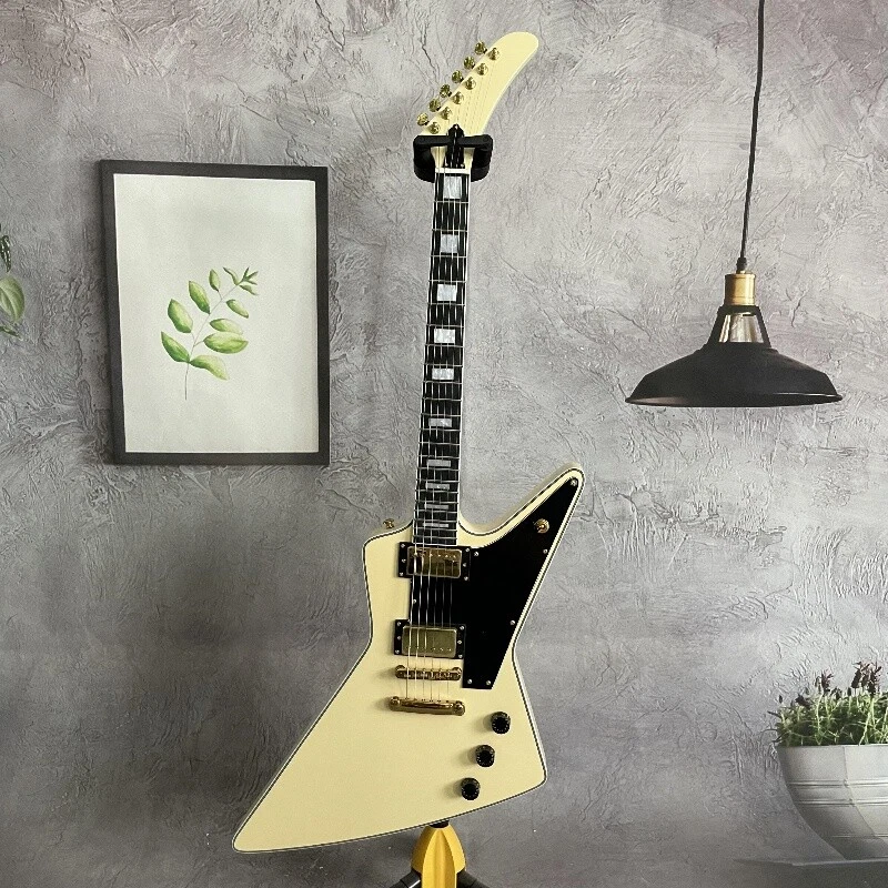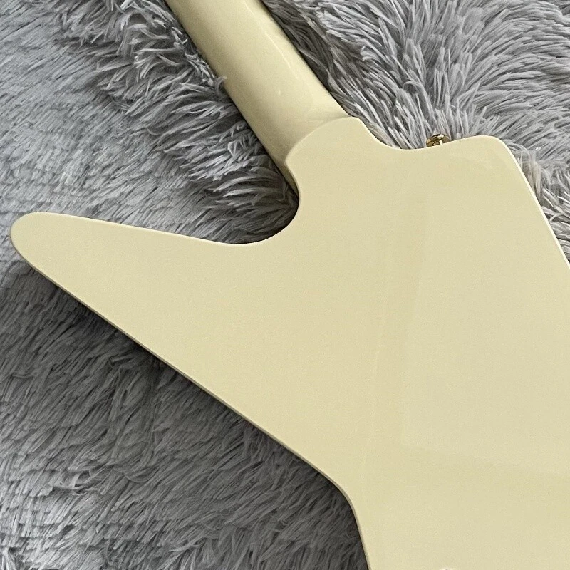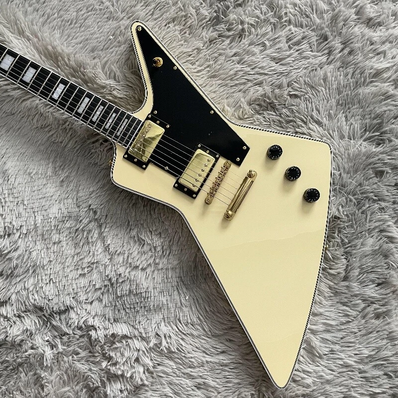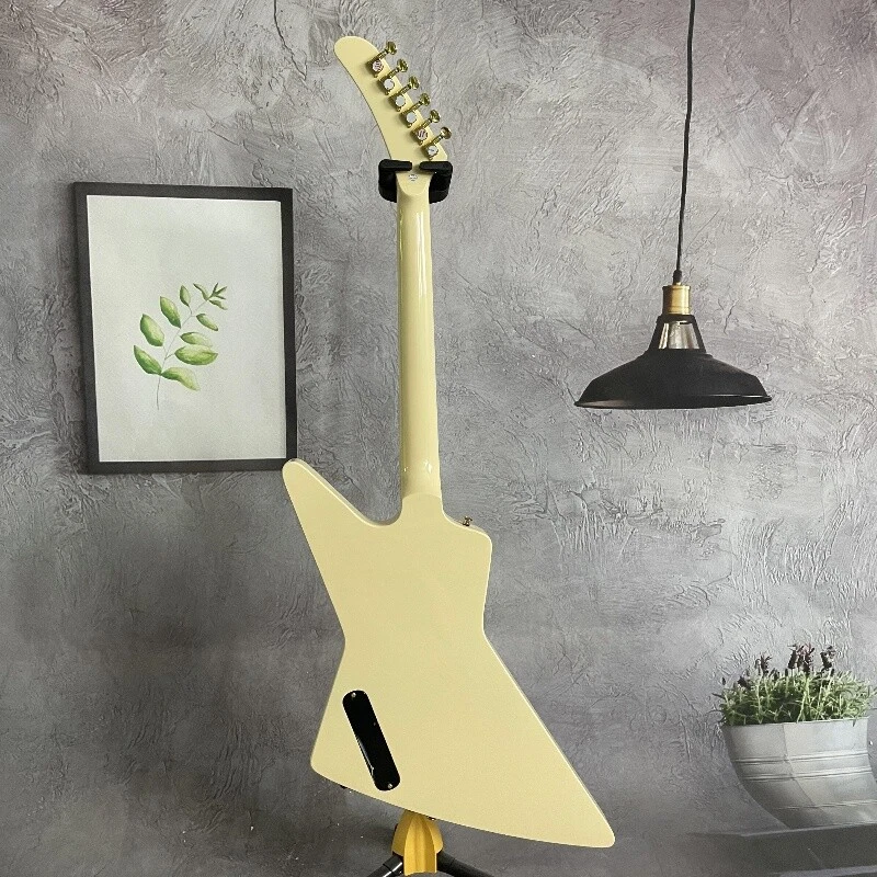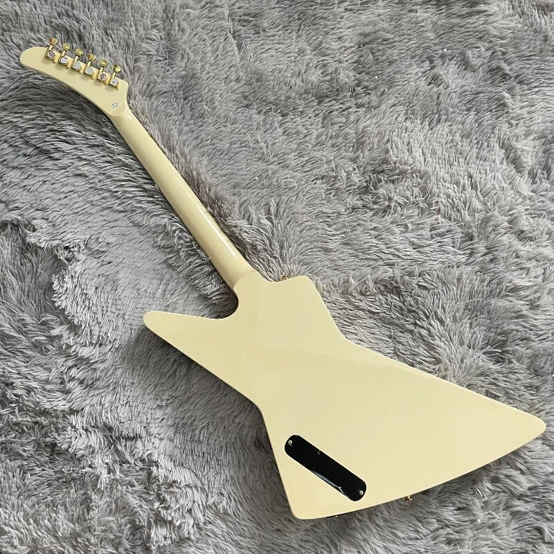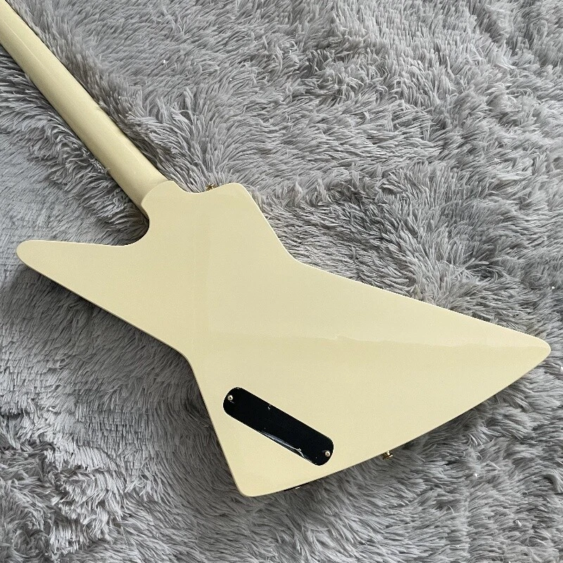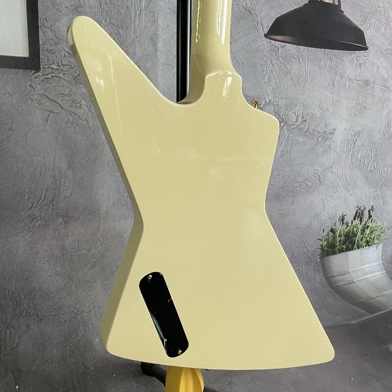 Cream Yellow Explorer Electric Guitar Black Pick Guard HH Pickups No Logo Body:mahogany Neck:mahogany Fingerboard:black Joint:Bolt on Pickups:2 humbuckers Electronic:1 Volume 2 Tone Bridge:T-O-M Nut width:43 mm ABOUT THE PICTURES The pictures are taken in our factories by ourselves. Every guitar cannot be the same in 100%, the pictures of the guitar that you see is just one of them. Head stocks are not pictured per our policy.If you want some details about the guitar, please contact me. OUR GUARANTEE We test every guitar is in good condition before it is shipped out. When you receive the guitar, if you meet some problems like readjustment the strings or you are not happy with our guitar, please contact me. PACKING We will place a foam box and foam filler to prevent damage to the guitar, but if the guitar is still broken in transit, please contact me. RETURN POLICY If the item you received is broken or defective, please contact me immediately and return it within 3 days after you received it with the original or approved packaging. After we received it, we will give you a Full-Refund or Exchange. Buyers are responsible for return shopping costs. If you want to replace it, we will send a new one to you and then forward a shipping label. For missing or replacement parts(from the original order), we will ship them to you. If you have any questions about a return or exchange,please contact me. FEEDBACK The new shop is not easy to operate, if you like our guitar, truly hope you can leave a good comment. If you are not satisfied, we will do our best to solve the problem. Thank you soooo much!