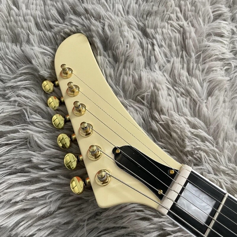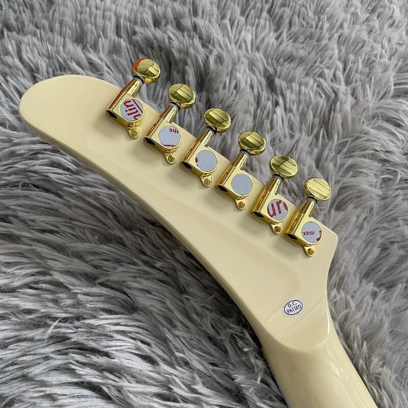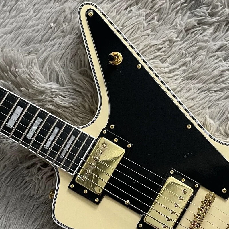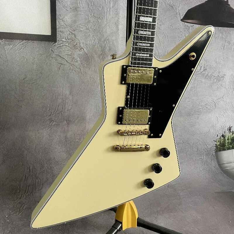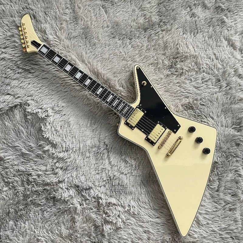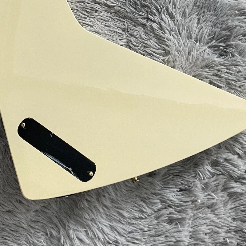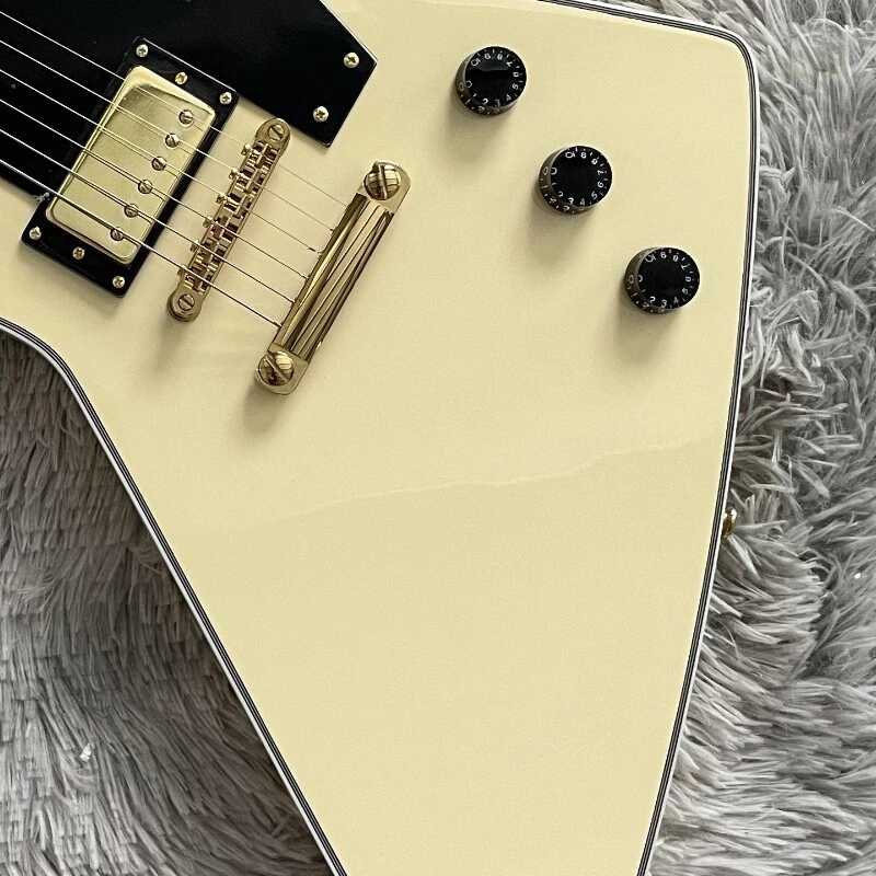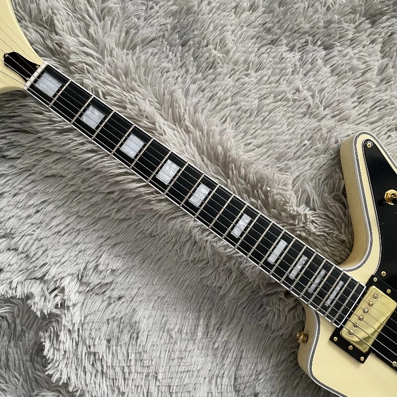 Cream Yellow Explorer Electric Guitar Black Pick Guard HH Pickups No Logo Body:mahogany Neck:mahogany Fingerboard:black Joint:Bolt on Pickups:2 humbuckers Electronic:1 Volume 2 Tone Bridge:T-O-M Nut width:43 mm ABOUT THE PICTURES The pictures are taken in our factories by ourselves. Every guitar cannot be the same in 100%, the pictures of the guitar that you see is just one of them. Head stocks are not pictured per our policy.If you want some details about the guitar, please contact me. OUR GUARANTEE We test every guitar is in good condition before it is shipped out. When you receive the guitar, if you meet some problems like readjustment the strings or you are not happy with our guitar, please contact me. PACKING We will place a foam box and foam filler to prevent damage to the guitar, but if the guitar is still broken in transit, please contact me. RETURN POLICY If the item you received is broken or defective, please contact me immediately and return it within 3 days after you received it with the original or approved packaging. After we received it, we will give you a Full-Refund or Exchange. Buyers are responsible for return shopping costs. If you want to replace it, we will send a new one to you and then forward a shipping label. For missing or replacement parts(from the original order), we will ship them to you. If you have any questions about a return or exchange,please contact me. FEEDBACK The new shop is not easy to operate, if you like our guitar, truly hope you can leave a good comment. If you are not satisfied, we will do our best to solve the problem. Thank you soooo much!