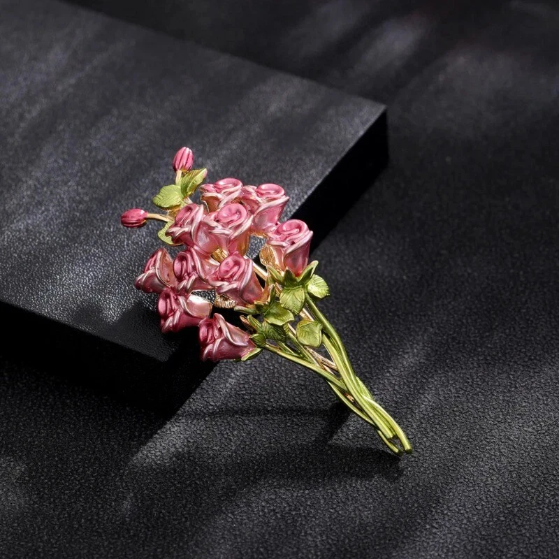 Creative French Vintage Pink Rose Brooch Enamel Delicate Pin Suits Accessories