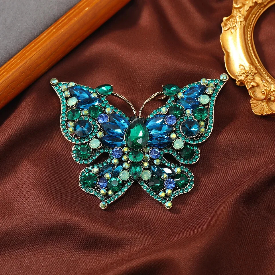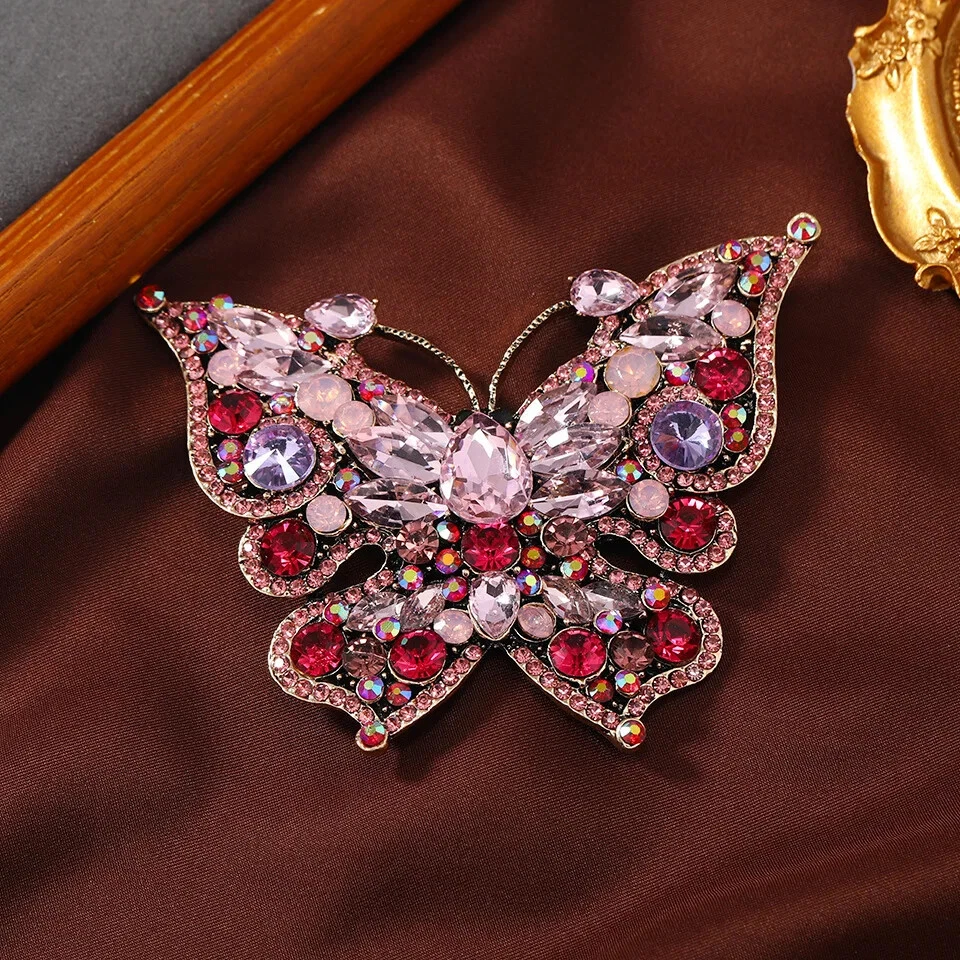 Creative Full Crystal Rhinestone Butterfly Big Brooch Vintage Insect Coat Pin
