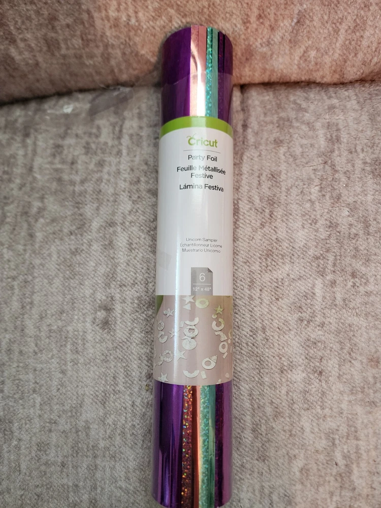 Add a touch of glamour to your cards and crafts with Cricut Party Foil. This pack includes two sheets of solid and holographic sparkle in a stunning white color. Great for making confetti and party decorations Purple, light pink and teal.