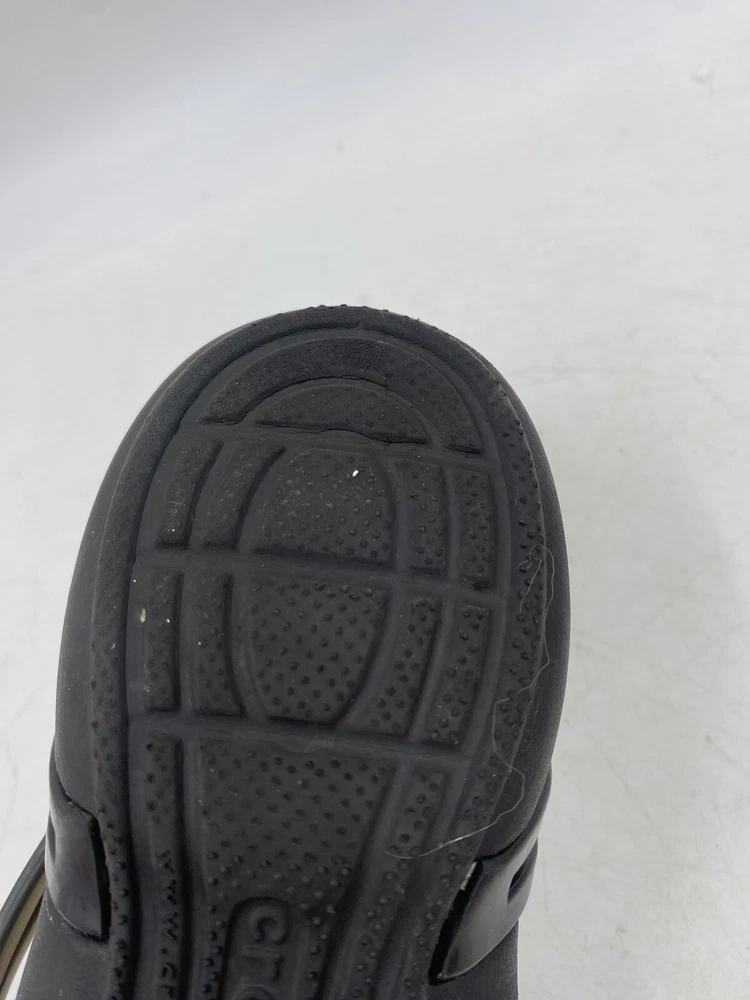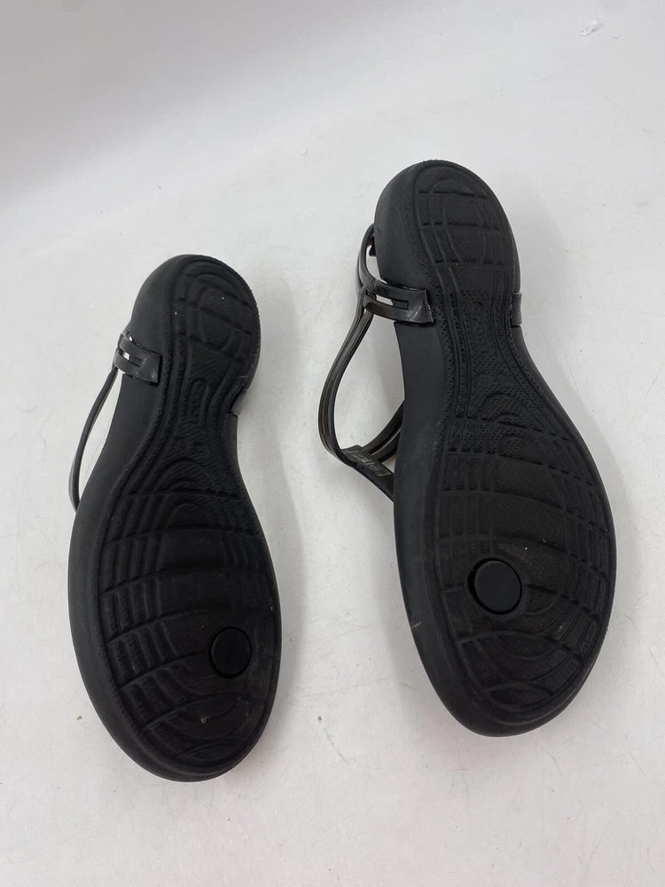 This is a pair of black Crocs Isabella t strap sandals. They are a women's size 6 and are in good overall condition with normal signs of wear. They could have light scuffs or sole wear. You get the actual items pictured so please look at all photos and ask any questions before purchase.