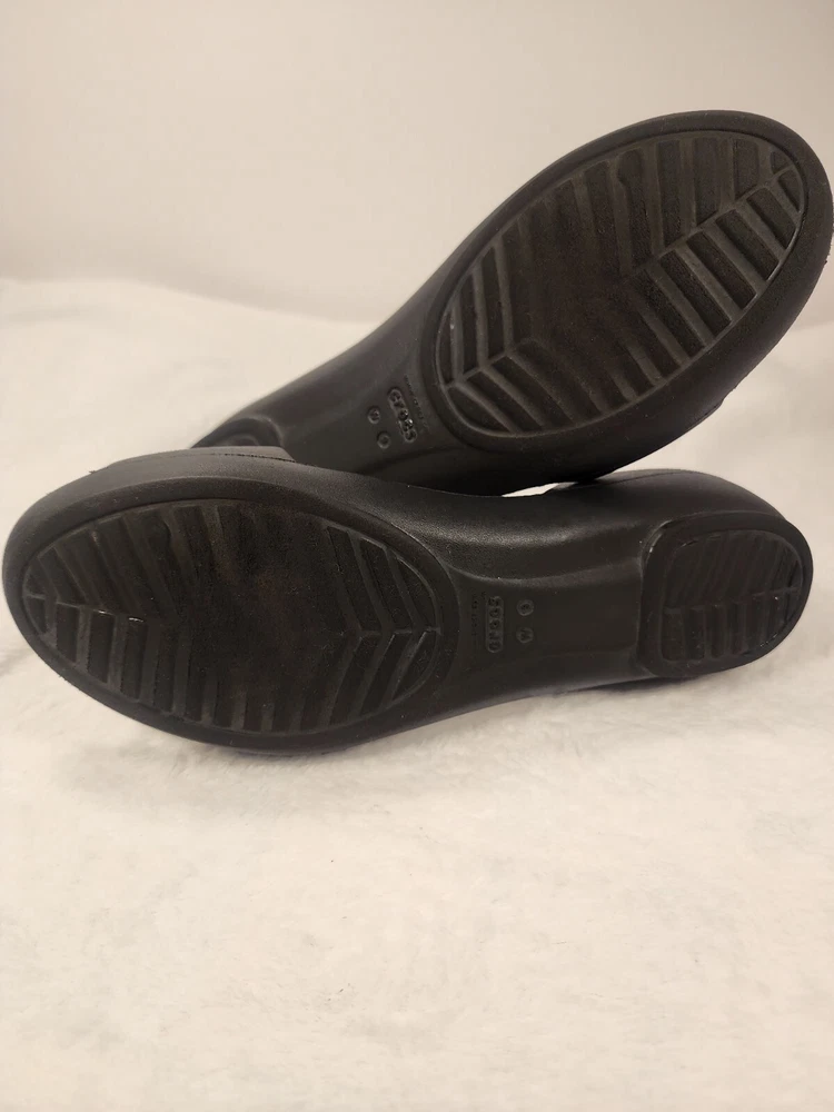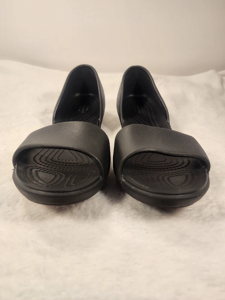 These black Crocs slip-on sandals are perfect for women who prioritize comfort and practicality. The lightweight and breathable features make them ideal for travel and casual wear during the summer, fall, and spring seasons. The synthetic lining material and low heel height provide a comfortable fit for all-day wear. The rubber upper material and solid pattern offer a classic and versatile look that can be paired with any outfit. These sandals are perfect for women who want a reliable and comfortable shoe option without compromising on style.