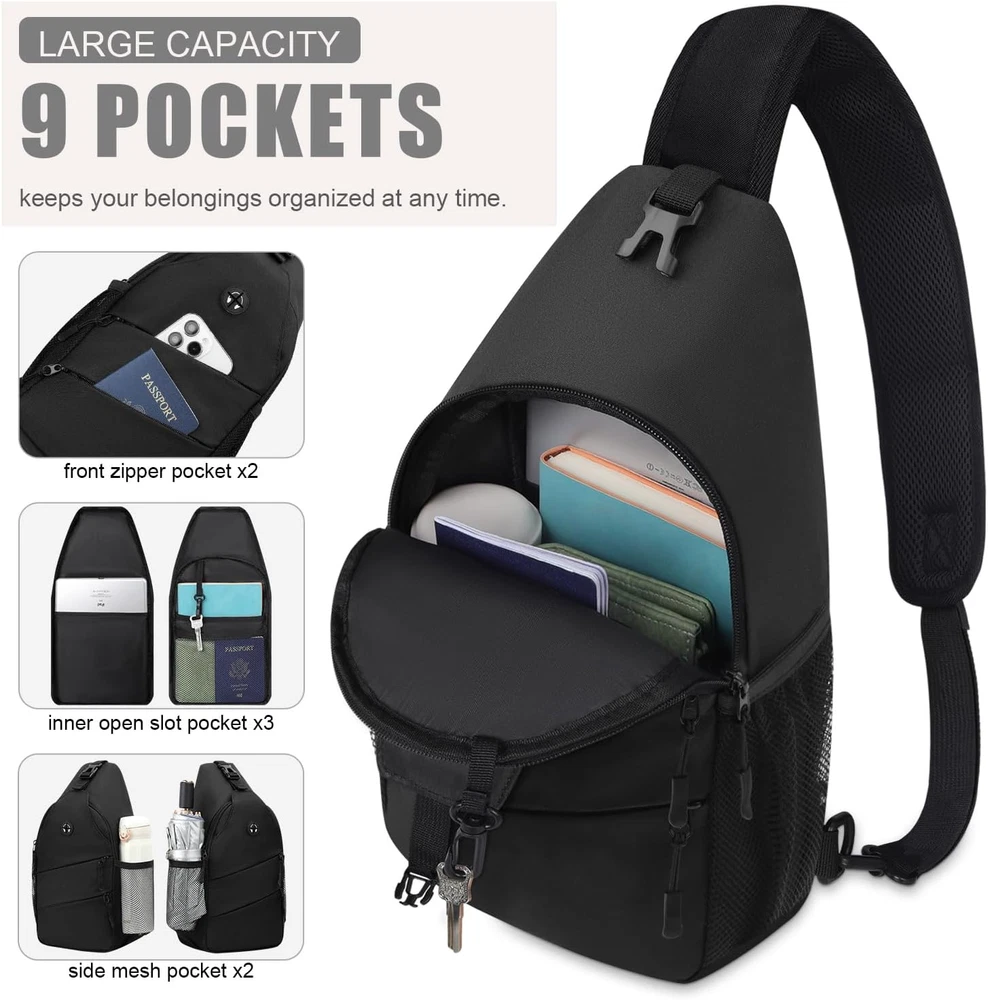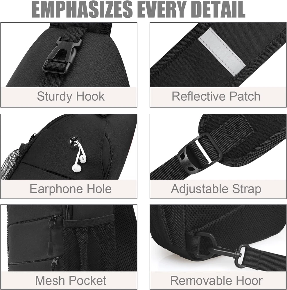 【Adjustable Strap For Both Sides】Our bags have one D-ring on each side of the bottom, and a detachable shoulder strap buckle. You can attach the strap for easy access on your left or right shoulder, reducing the strain of carrying your bag for a long time. The strap can be extended up to 42 inches to accommodate different body sizes and you can adjust the length to your comfort. 【Well Organized- Multi-pockets】You don’t have to waste time searching for things in a cluttered bag! We have 2 front zipper pockets and a buckle pocket that can fit your wallet, power bank, and tissue. The main pocket has enough space to fit all the essentials you need, it has 4 open pockets can easily store your iPad, cosmetics, or other essentials. Side mesh pocket can store anything you need for easy access. A special hook for hanging your keys! Have everything you need within reach! 【Durable & Waterproof Material 】Our chest bag are built to last with thick, durable, and abrasion-resistant fabric. The material is also waterproof and tear-resistant, whether you’re hiking through rough terrain or commuting in the rain, our backpacks will keep up with you, ensuring that your belongings stay safe and dry. The crossbody bags are designed to be lightweight and comfortable, making them perfect for long hikes or daily commutes. 【Comfortable and Safty】Designed with a soft, breathable mesh back panel which is especially important for people who are carrying heavy loads or hiking in hot and humid weather, it not only provides a comfortable carrying experience, but also isolates the items inside the bag from the skin, prevent discomfort caused by friction. The shoulder straps are designed with reflective strips to ensure you are more visible, so enjoy the fun of outdoor exploration without any worries. 【Practical And Pleasing】Are you looking for a classic and versatile cross body bag that never goes out of style? Pritent crossbody bags are an ideal product that combines fashion, convenience, and performance. The perfect stylish appearance easy to match various styles of outfits.And there is a hidden headphone hole on the front that provides easy access to your headphones, without the hassle of tangled cords. It’s a great way to stay connected to your favorite tunes while on the go! Product Description Adjustable Strap For Both Sides Our bags have one D-ring on each side of the bottom, and a detachable shoulder strap buckle. You can attach the strap for easy access on your left or right shoulder, reducing the strain of carrying your bag for a long time. The strap can be extended up to 42 inches to accommodate different body sizes and you can adjust the length to your comfort.