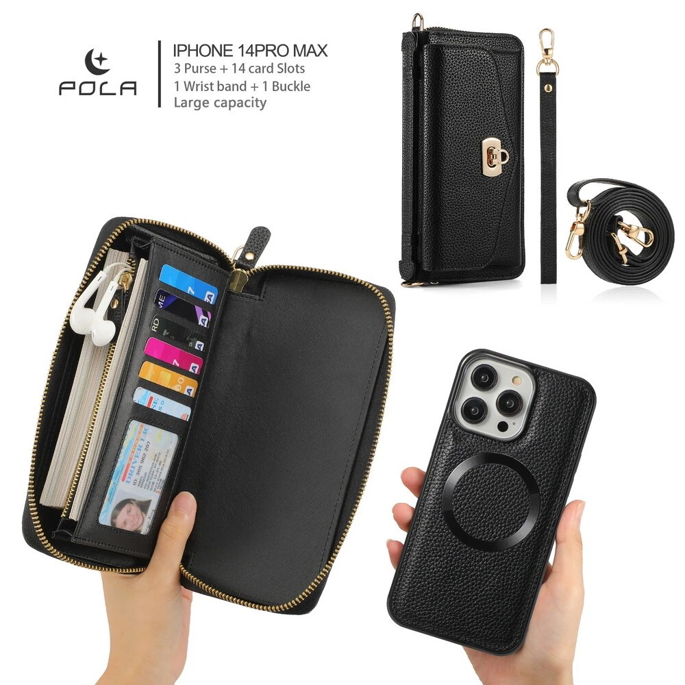 Description Women Leather Wallet Crossbody Phone Bag Removable Magnetic Case Cover For iPhone Samsung Video will open in a new window Using the eBay App? Paste link into a browser window: [isdntekvideo] [Large-capacity wallet] Built-in multifunctional cash purse, card slots, and side card holder. Card slot zipper wallet can store more credit cards, cash, change, keys, etc. RFID blocking protection design, prevent your private credit card information from stealing by data thief, keep your private property in safety. ️Due to the different sizes of mobile phones, the size of wallets and the number of card slots also vary. If necessary, please contact our customer service to confirm it for you. [Slim Detachable Back Shell] Both the inner shell and leather case have built-in magnets, which can stably fix the inner shell in the wallet without shaking. When you need to slip it into jeans pockets, you can toss out the bulky outer wallet part, can be used as a seperate single back cover, now you can take photos with the slim TPU shell. This new detachable wallet means to bring more flexibility to everyone. [Magnetic Magsafe Charging Cover] Built-in magnetic circle on the back shell, that support Apple Magsafe wireless charger for iPhone 12 and newer iPhone. ️NOTE : For iPhone 6/6s/6 Plus/6s Plus/7/8/SE 2020/SE 2022/X/XS/XS Max/XR/11/11 Pro/11 Pro Max and Samsung series Phone cover does not support magsafe charging. [Essential for women] There is a small bag and a small mirror on the outside of the wallet. The small bag can store some cosmetics and makeup tools, such as lipstick, eyebrow pencil, etc. With it, you can touch up makeup at any time. [Safe carrying] Included the telescopic wristband, hand strap, crossbody strap, you can easily carry it in different ways. Package Content: 1x Zipper Purse Detachable Leather Wallet Case Magnetic Cover 1x Crossbody Strap 1x Hand strap Please Read The Following Carefully! ⭐️ The pictures shows as a sample, perhaps it looks like the hole position may not match your phone, while the item you get will be delivered with your chosen model. Don't worry about the wrong hole position. ⭐️ Physical and pictures colour may be slightly different, because the brightness problem and color settings. If you are concerned about color differences, please do not purchase it. Please kindly understand, thanks! ⭐️ This product is compatible with more phone models, but not all are listed. If you cannot find your phone model, Please feel free contact us. ⭐️ If you do not know your phone model, please check "General -- About " or "System--About Phone" in setting.