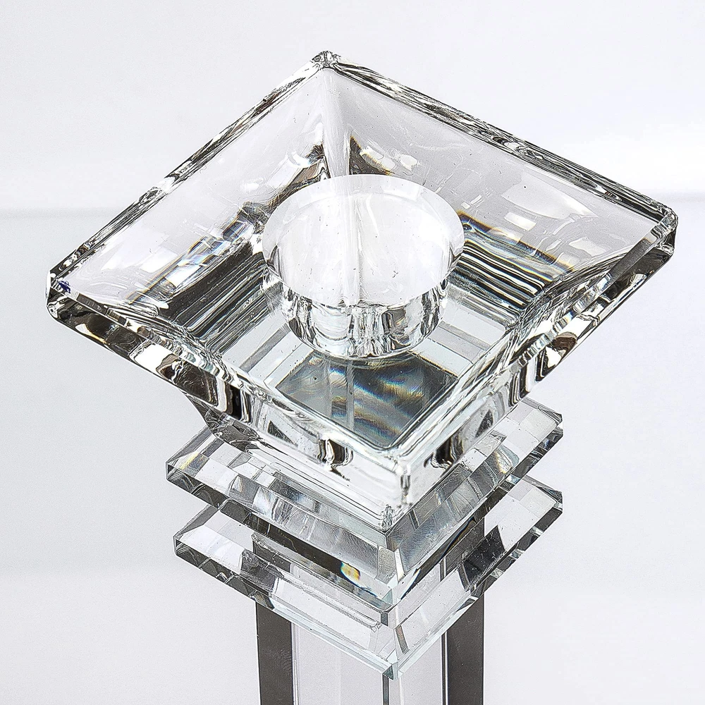CRYSTAL CANDLESTICKS HOLDER - These 9.2" tall candlestick holders are perfect for short, taper or long candles. Fits candles up to 7/8 inches in diameter. ELEGANTLY CARVED - Made with genuine fine crystal, these candle holders feature a fine sleek design, with beautiful craftsmanship and quality construction. Accentuate the natural beauty of candlelight. ACCENTUATE YOUR DECOR - Add a touch of elegance to your home decor or centerpiece dining table decor with this beautiful pair of crystal candle stick holders. SIMPLY STUNNING - This candle stand comes in convenient set of 2 candle holders, the perfect addition to enhance any setting. Artistically designed to coordinate beautifully with any tabletop décor. MAKES A GREAT GIFT - An excellent present choice also for birthdays, holidays, anniversaries, romantic evenings, Valentine’s Day or wedding registry!