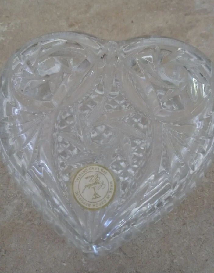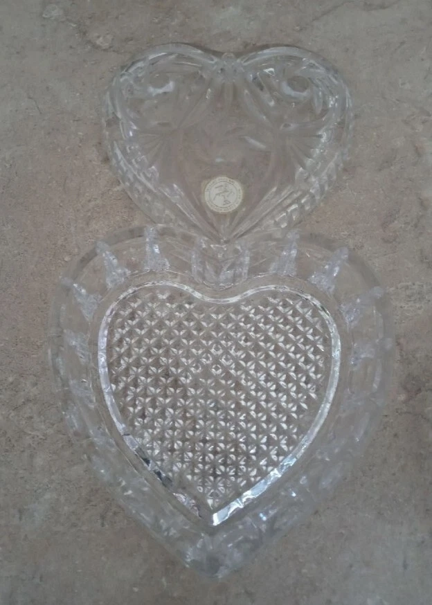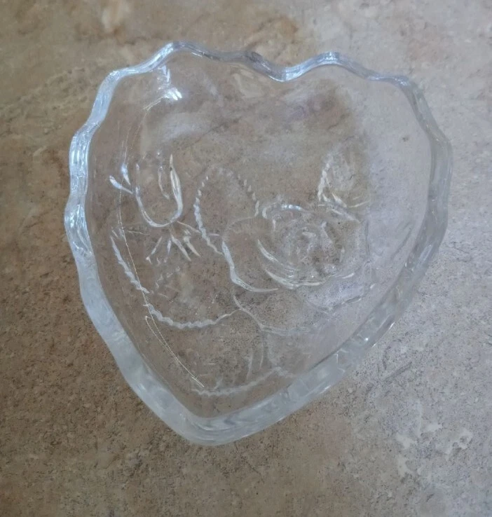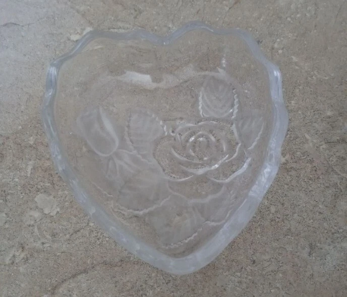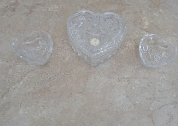 Crystal heart set-Valentine Gift. Big trinket heart 5x5. 2 small dishes 3.5x3. Good condition