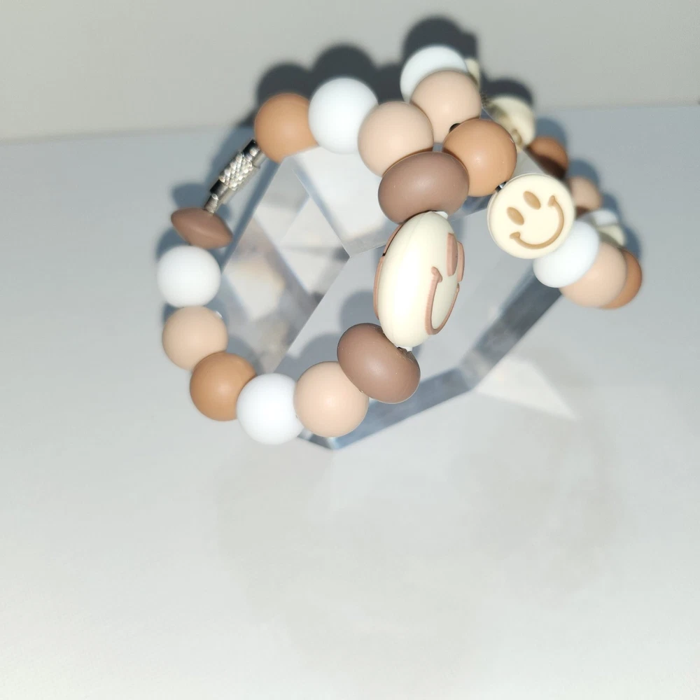 This handmade cup charm is a perfect accessory for your tumbler handle. The round spacer beads come in a lovely combination of brown and white, with a cute smiley face π design. The charm is made of high-quality silicone material with a matte finish for durability. The charm is a great addition to your collection of cup accessories and can be used as a decorative piece or a marker for your drink. It is suitable for all types of tumblers and cups. Add some personality to your cup with this adorable cup charm! If you prefer to purchase just one, message me & I'll update. $8.50 Each If you have any questions regarding this item, please feel free to message me. Beads can be washed as needed in warm soapy water. All the beads I used came from ABC Bead Supply. Product made May 2024
