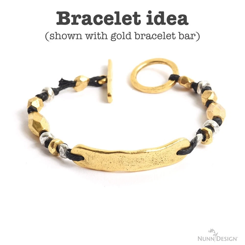 Antique silver plated blank bracelet bar link by Nunn Design is great for making beautiful personalized handmade jewelry. Bracelet link is slightly curved to fit comfortably over the wrist. Front of bracelet bar can be hand stamped with a name to create a custom ID bracelet. Approximately 39mm x 8.5mm. Link is cast in pewter, then electroplated in fine silver, and finally oxidized to create an antiqued finish. Sale is for one (1) bracelet. Buy more and save with volume pricing and combined shipping ! MEASUREMENTS: (all measurements are approximate) - Dimensions: 39mm long x 8.5mm wide x 2.5mm thick - Hole size: 1.5mm Check out the rest of my items for more beads, charms, pendants, and other jewelry making components from brands like TierraCast, Nunn Design, Mykonos Beads, Zola Elements, Green Girl Studios, and more! COMBINED FLAT RATE SHIPPING: Buy multiple items and pay just one flat shipping rate when all items are paid for at the same time. A combined invoice will be sent for all items purchased so you only pay one flat rate for shipping within the U.S. NO INTERNATIONAL ORDERS: Only shipping to U.S. addresses at this time. No international orders from countries or territories outside of the United States.