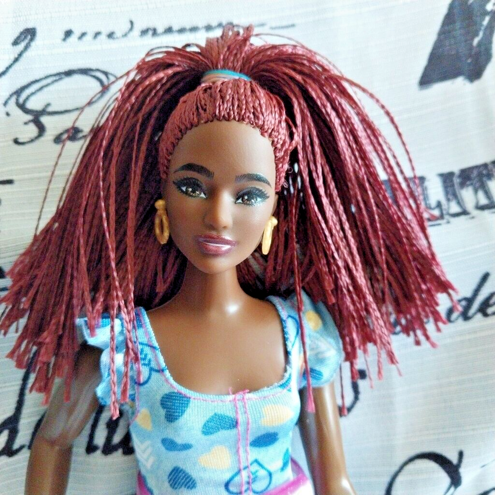Mattel AA Curvy Barbie Restyled New Doll / New Clothes, Shoes, Stockings, Fanny Pack, Watch (Only Taken out of packages to use for Restyling) Long Braids Burgundy Hair 11.5" Recommended 3+ years Ideal for Gifting, Barbie Doll Collectors, or for Play. We make every possible attempt to accurately describe the inventory we sell. However, the angle of camera and lighting may or may not distort color very slightly. Any questions message us before purchase.