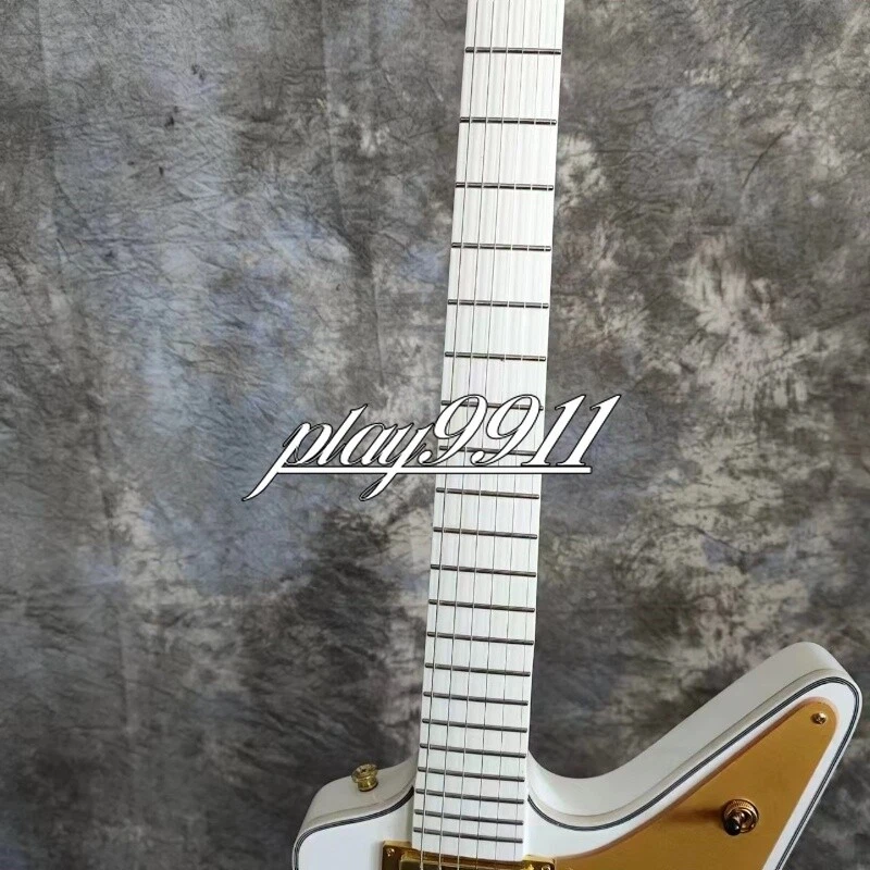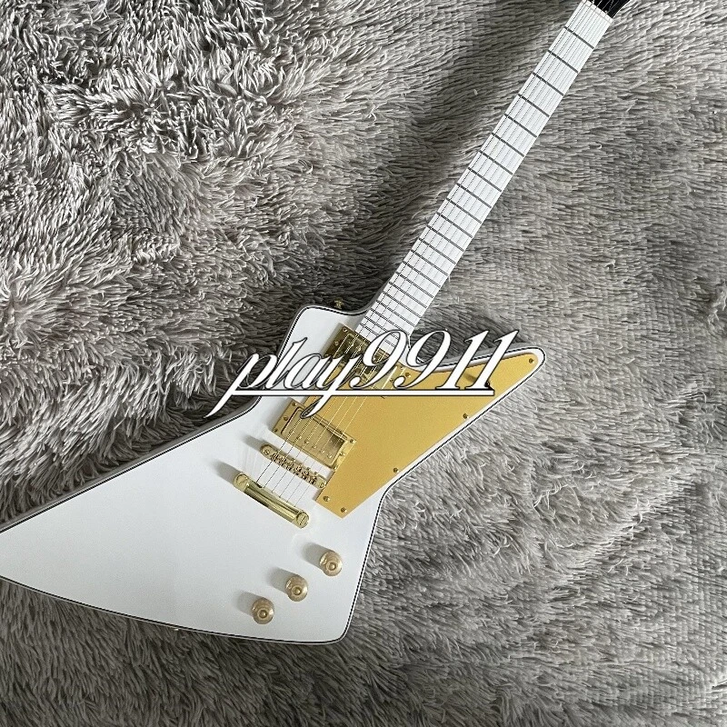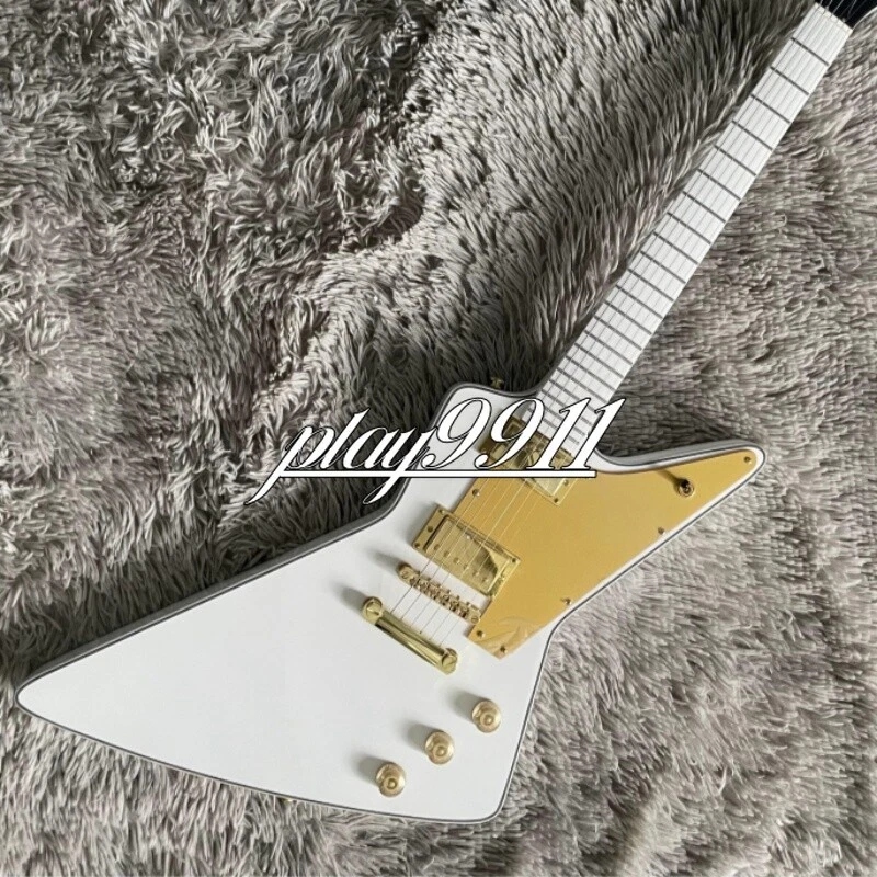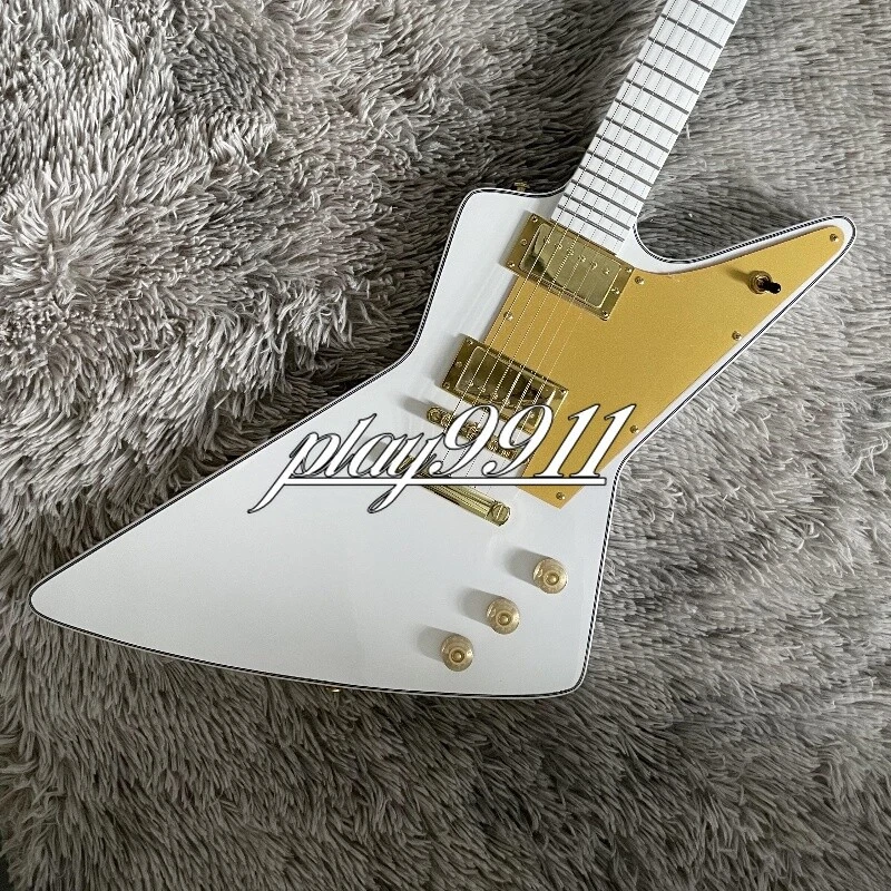Custom Explorer White Electric Guitar Gold Hardware Gold Pick Guard HH Pickups Welcome to my store. My team has been making musical instruments for many years. I will try my best to provide the best item for you! Goods condition Body:Mahogany Neck: Mahogany Fingerboard: Rosewood Nut width: 43 mm Scale Length:24.7 inch Joint:Bolt on Hardware:Gold Pickups:2 Humbuckers Pickup Switch:3-ways Electronic:1 Volume 2 Tone Bridge:T-O-M ABOUT THE PICTURES The pictures are taken in our factories by ourselves. Each guitar is different from others because of the light in room or some other reasons .So there are maybe some differences between the pictures and the guitar you get. Every guitar cannot be the same in 100%, the pictures of the guitar that you see is just one of them. If you want some details about the guitar, please contact me. OUR GUARANT EE We test every guitar (such as buzzing, sound test, workmanship) is in good condition before it is shipped out. When you receive the guitar, if you meet some problems like readjustment the strings or you are not happy with our guitar, please let me know immediately and we will try our best to meet you satisfaction. CUSTOMIZED CEN TER Head stocks are not pictured per our policy. Custom Head stocks are available upon request from our factory custom shop. Please contact us for details. All customized products are non-returnable. SHIPPIN G Once payment has been confirmed, your item will be shipped within 3 or 30 business working days. That depends on specific goods deliver ways.The speed also base on Custom Clearance Speed, which we can't control .So if you want this for your gig next weekend it probably wont make it on time, so please keep that in mind when ordering. PACKI NG We use the carton which is designed for the International transport to package the products you ordered. And we can guarantee the items will not be damaged in the way of transportation. RETURN POL ICY If the item you received is broken or defective, please contact me immediately and return it within 3 days after you received it with the original or approved packaging. After we received it, we will give you a Full-Refund or Exchange. Buyers are responsible for return shopping costs. If you want to replace it, we will send a new one to you and then forward a shipping label. For missing or replacement parts(from the original order), we will ship them to you. Please read the RETURN POLICY before you order it! FEEDBA CK Thank you for your great comments and feedback. (a) When you are satisfied with your purchase, we sincerely hope that you can give us a positive feedback. Again, we will give you a positive feedback. (b) If you are dissatisfied with your purchase, please contact us submitting a neutral or negative feedback. We will respond to you in 24 hours and work with you until you are satisfied.